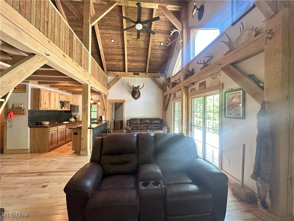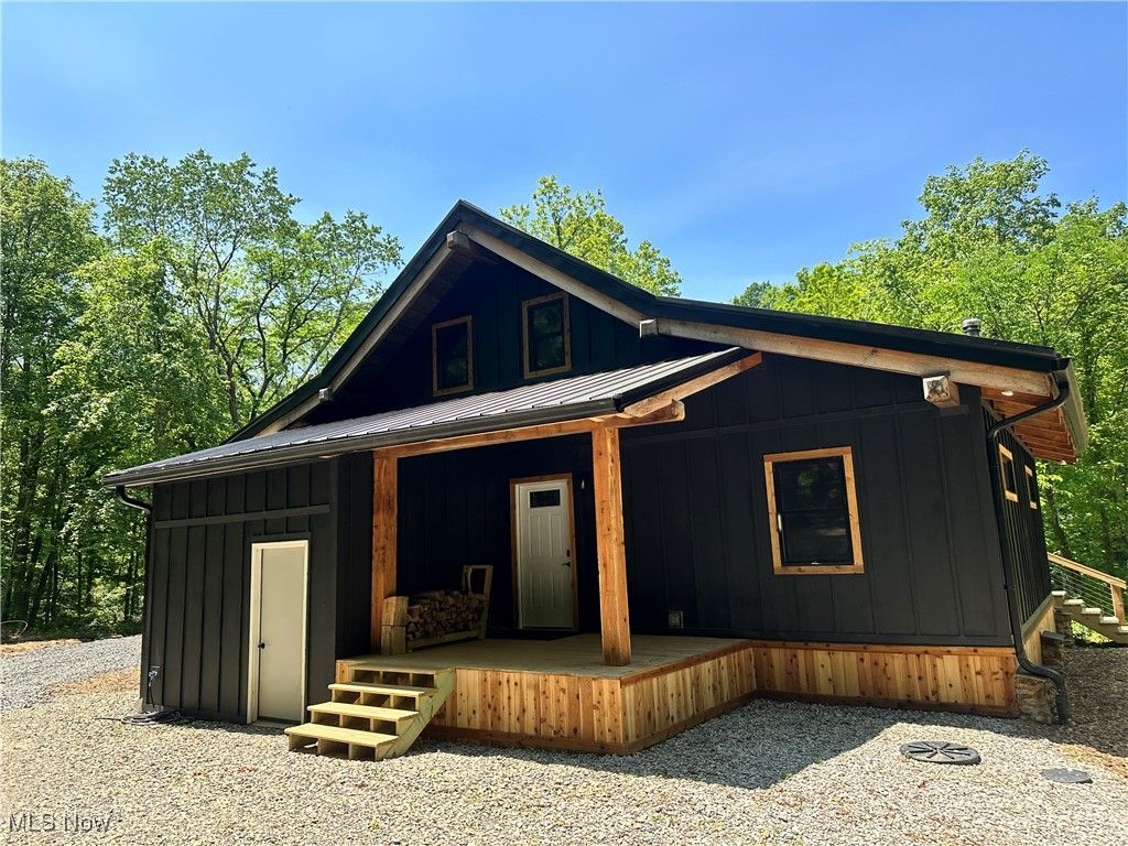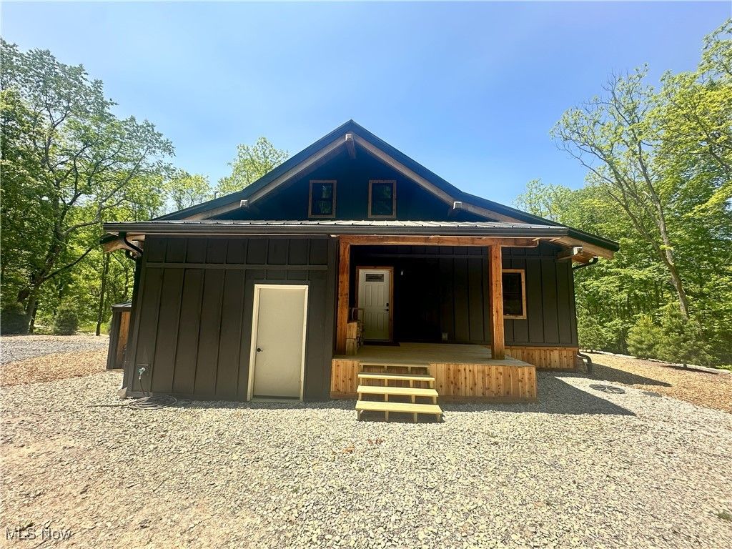 Escape to your own secluded 45.947-acre paradise, designed for the true outdoor enthusiast. Nestled deep in nature, this recreational retreat features a brand-new off-grid, solar-powered A-frame cabin that comfortably sleeps 10-12. Crafted with 8x8 timber framing from red oaks harvested on-site, and finished with hickory floors and pin oak trim, the cabin blends luxury with sustainability along with an abundance of finer touches. Energy-efficient mini-split HVAC system installed to provide year-round heating and cooling comfort, ideal for off-grid or remote living. Mounted securely on the exterior, this unit offers quiet, reliable climate control with low energy consumption, not to mention a beautiful wood burner for those that want a crackling fire. Powered by 16 solar panels (450W each), 2 EG4 batteries, and a Luxpower 12kW inverter, this off-grid system ensures comfort in the wild. Wildlife abounds"”deer, turkey, bobcat, squirrel, wood duck, grouse, barred owl, and more. Relax on the front deck overlooking a serene pond with a bedrock bottom. Retaining wall was made from on-site stone. A second wall features hand-laid foundation stones from a historic Mansfield schoolhouse. Approx. 1 mile of trails and a small food plot offer year-round adventure. Whether you hunt, hike, atv ride or simply enjoy nature, this rare, private getaway is where peace meets precision. The driveway ascends with a tasteful incline, offering beautiful views and a grand entrance to the home that enhances the property's secluded feel.