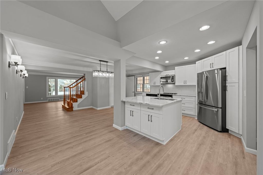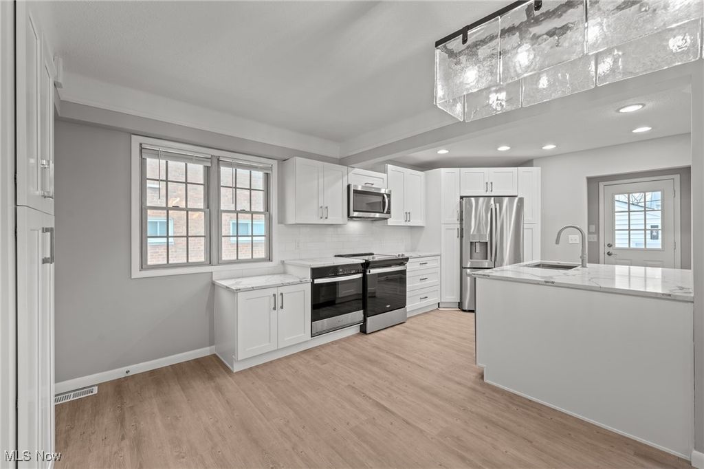 Discover modern elegance at 24103 Woodway, a meticulously updated Cape Cod that seamlessly blends classic charm with contemporary luxury. Boasting stunning renovations in the Heart of Beachwood, spanning five bedrooms and four bathrooms, this move-in-ready residence features a fully finished basement and a comprehensive list of high-end upgrades. Property Highlights include a designer kitchen with all the bells and whistles. A brand-new gourmet chef's space featuring white shaker cabinetry, quartz countertops with an oversized island, subway tile backsplash, and premium appliances including two ovens. Featuring modern finishes throughout, the main level boasts all-new LVT flooring, fresh interior paint, updated lighting fixtures, and new baseboards and casing throughout. You will certainly not sacrifice on comfort & efficiency. Enjoy dual-zone climate control with independent furnaces for each floor, plus previous bathroom renovations and gleaming hardwood floors on the upper level. You will also notice the enhanced curb appeal. Relaxation awaits on the new patio and front porch, complemented by a newly installed front window. This is a rare opportunity to own a turnkey home in one of Beachwood's most desirable locations. Contact the listing agent to schedule your private tour.