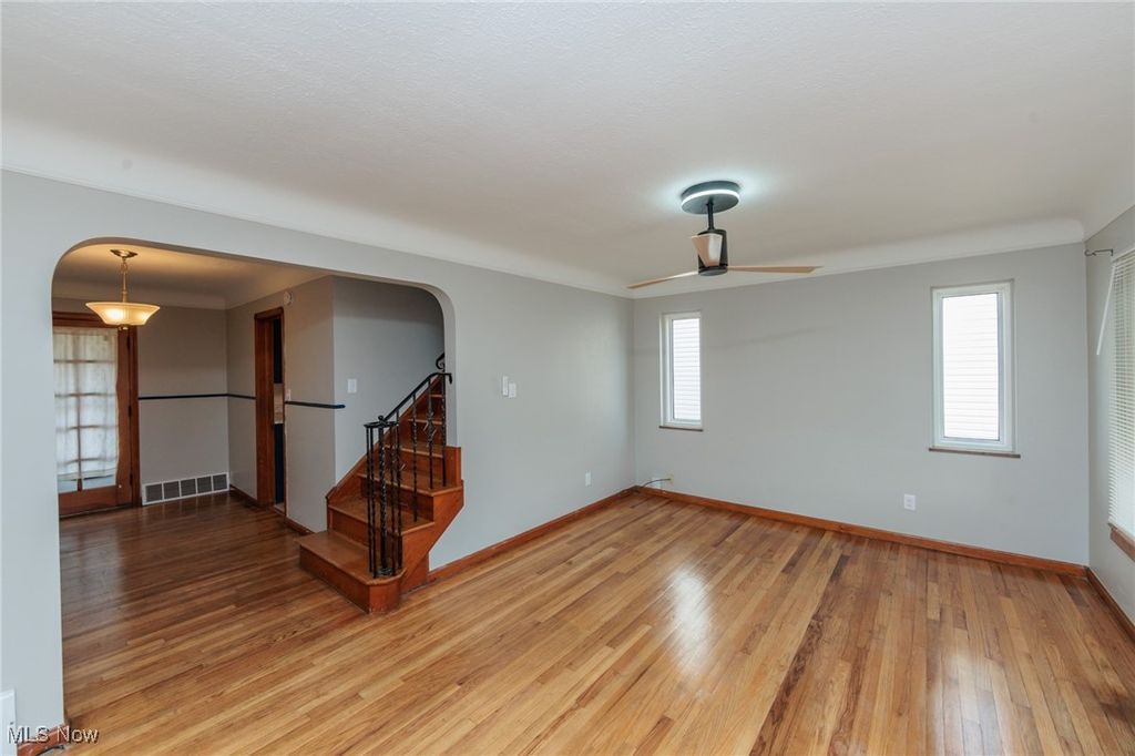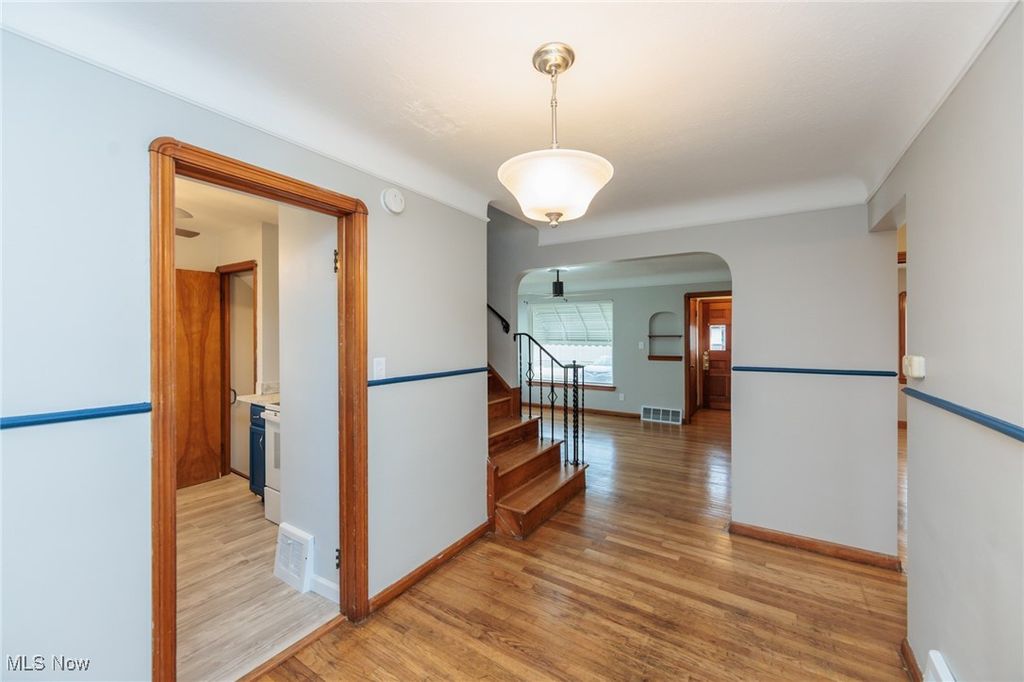 Charming 4-Bedroom Parma Bungalow! This spacious and well-maintained home offers 2 bedrooms on the first floor and 2 bedrooms on the second floor (no tandem layout!). Enjoy a large primary bedroom on the first floor, featuring fresh, modern paint colors throughout. Both bathrooms have been beautifully updated for a sleek, contemporary look. The kitchen comes equipped with a range and refrigerator. Washer/dryer stays too. Hardwood floors grace the entire main floor, and a true formal dining room opens up to the back yard, perfect for outdoor entertaining. The finished basement includes a cozy rec room with a built-in bar, providing even more space for fun and relaxation. This home is move-in ready, offering comfort, style, and convenience in a prime Parma location!