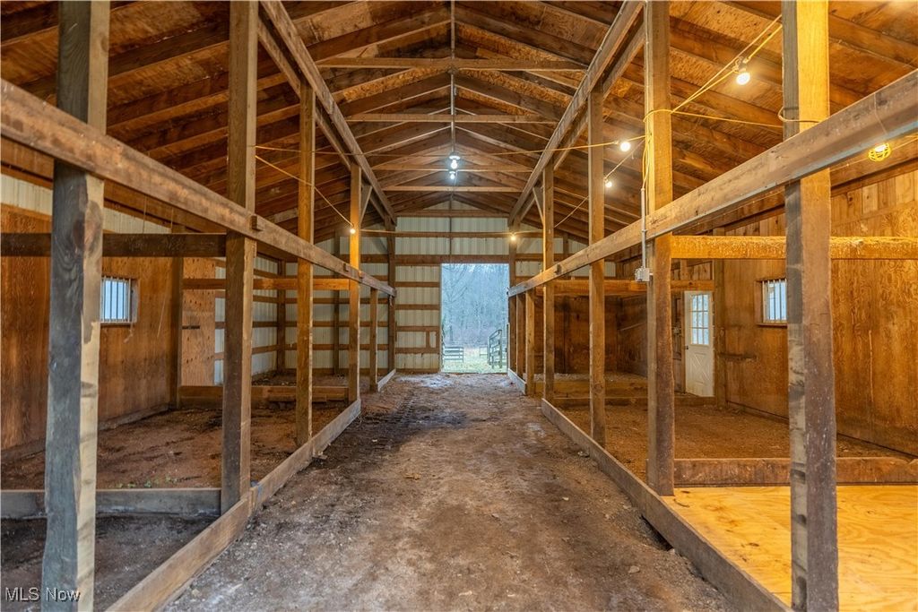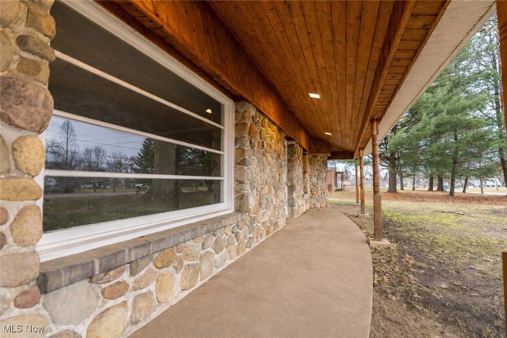 Welcome to this beautiful stone bungalow, brimming with charm and nestled on 2 peaceful acres of countryside. A perfect blend of modern updates and timeless cottage character. Step onto the stunning covered front porch, accented with cedar beams, and picture yourself enjoying quiet mornings with coffee. Inside, the inviting great room sets the tone with a wood-burning fireplace surrounded by stone, a beautifully crafted mantle, and a unique curved built-in bookcase that adds both charm and function. The heart of the home is the bright, updated kitchen featuring classic white cabinetry, subway tile backsplash, stainless steel appliances, and generous counter space. Just off the great room, you'll find two spacious bedrooms and a full bath with a tiled tub/shower combo and a large glass block window. Upstairs, two more cozy bedrooms showcase warm wood paneling, built-in trundle beds, and a convenient half bath. For those who love natural light, the sunroom offers the perfect spot to relax, with a brick accent wall, sliding glass doors to the patio, and access to the attached 2-car garage with a workbench. Outside, your private countryside retreat awaits a patio for gathering with friends and family, and a 30x40 barn with 5 stalls, electricity, and three large fenced-in pens, ideal for animals to graze and roam safely. The partially finished basement adds even more versatility with a large rec room, plenty of storage, and a laundry area. Some recent updates include a new roof, siding, furnace, central air, appliances, kitchen cabinets, bathroom, flooring throughout, and a garage door. Don't miss the chance to call this charming country retreat your own. Schedule your private showing today!