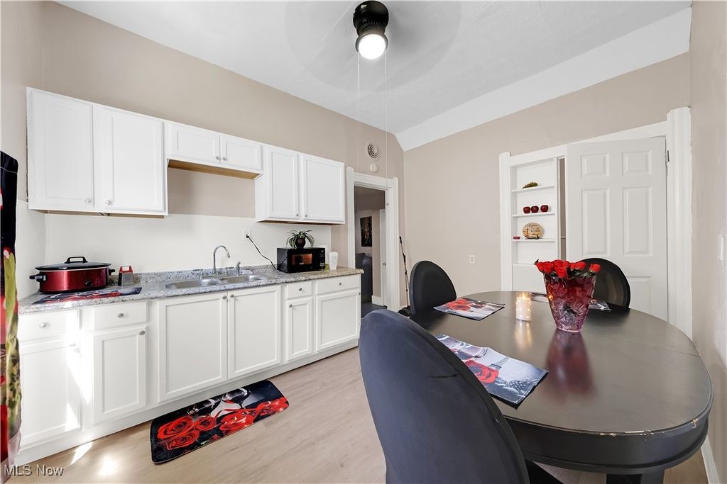 Welcome to this updated fourplex on the west side of Cleveland with a huge 4 car garage! Two units are 2 bedrooms, 1 bathroom and the other 2 units are 1 bedroom, 1 bathroom each. The building is fully rented for $2,914/month! The rent breakdown is $864/month through 4/5/2026, $650/month through 2/28/2026, $900/month through 2/28/2026 and $500/month through 04/30/2026. The units were just painted with updated trim, LVP flooring in the main areas and carpet in the bedrooms. This also has multiple new furnaces, new HWT's, new windows and general cosmetic updates. Come check out 3465 W 54th today.