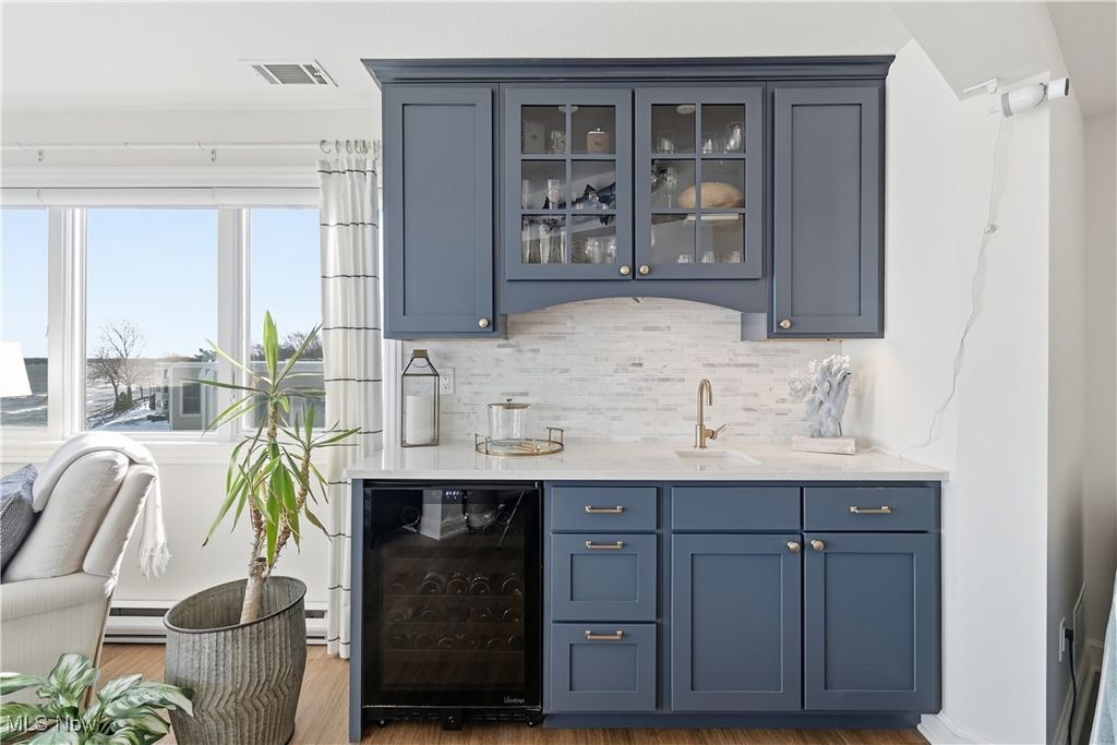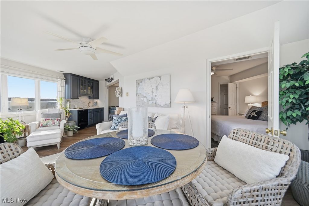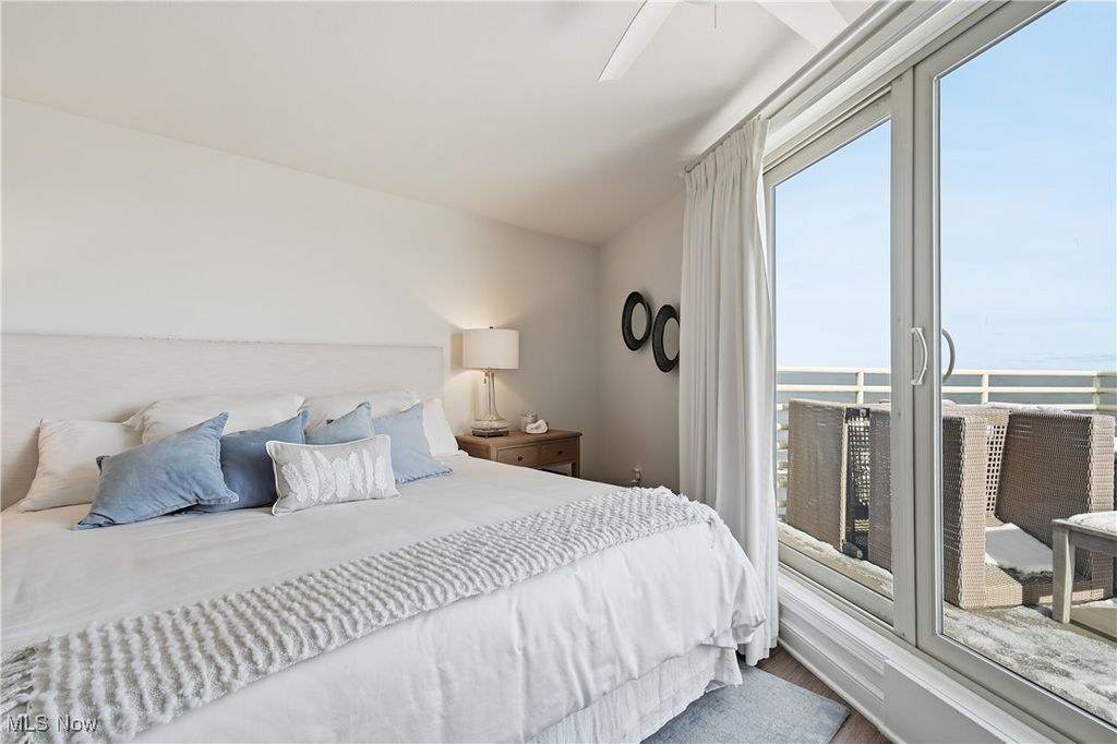 Rare lakefront end-unit condo with breathtaking views of Lake Erie! This impeccably maintained home has been beautifully renovated and offers 2 bedrooms and 2 full baths, with one bedroom on each level-ideal for privacy. The primary bedroom provides a spacious, relaxing retreat with exceptional lake views from the newly renovated balcony. The open floor plan boasts vaulted ceilings and flows into the stunning Harbor Room with three walls of windows and a wet bar, perfect for entertaining. The kitchen features stainless steel appliances and high-end finishes. A spacious mudroom houses the new furnace and A/C, a new washer and dryer, and plenty of shelving. Enjoy resort-style living with HOA amenities such as direct beachfront access, pool, fitness room, marina, tennis/pickleball courts, indoor heated garage, and a locked storage unit. On site dock rental available. A truly exceptional lakefront opportunity!