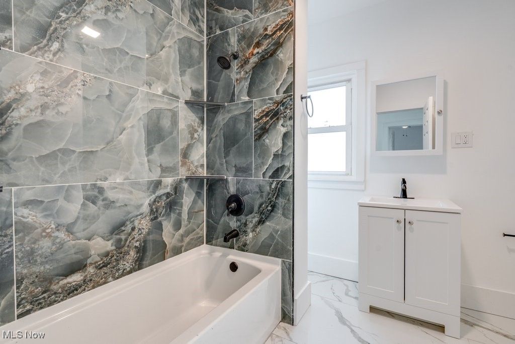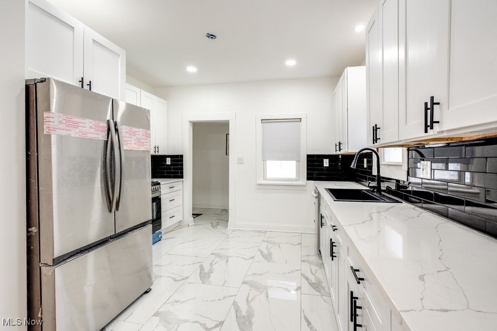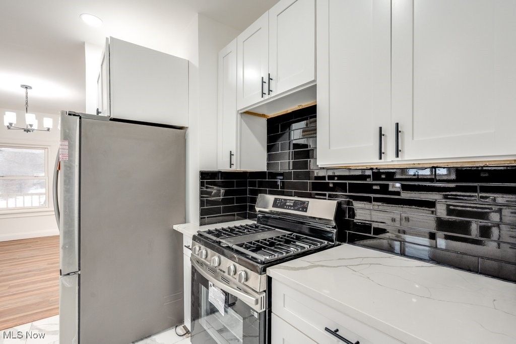 Move right into this clean, cozy, comfortable home. Completely remodeled NEW: HVAC system, gutters, appliances, windows, floors, electric, fixtures and paint throughout. Remodeled kitchen with ceramic tile floors, new cabinets, granite counters and stainless steel appliances. New bathroom with ceramic tile floors, shower and vanity. Also features full basement with laundry hook ups, two back doors, cozy front porch, back porch off second floor bedroom, nice size, fenced in back yard. Driveway aligns with next door, but not shared. Half bath in lower level is plumbed ready to complete. Elementary school within walking distance, not far from Heights High and Cain Park, health club, park, medical services and shopping and much more! Schedule a showing today!