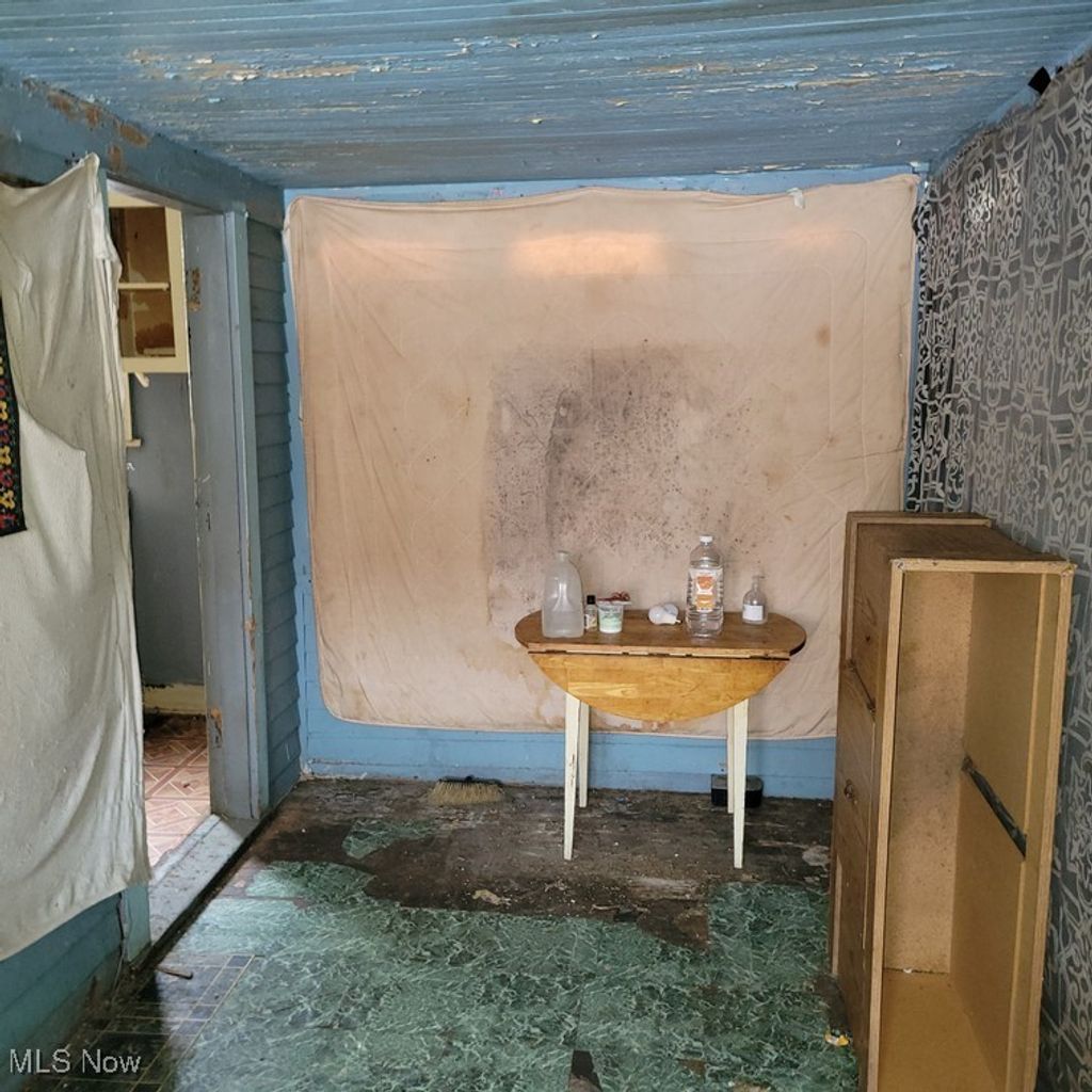 This framed-exterior ranch is situated on a corner lot and offers a functional layout with multiple living spaces. The home features a rear porch, off-street parking, and a living room with a decorative fireplace. A formal dining room provides additional space for gatherings. The property includes two bedrooms, a rear enclosed porch, and a full unfinished basement that is in need of repair. This home presents an opportunity for buyers or investors looking to renovate and add value.