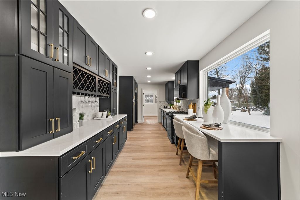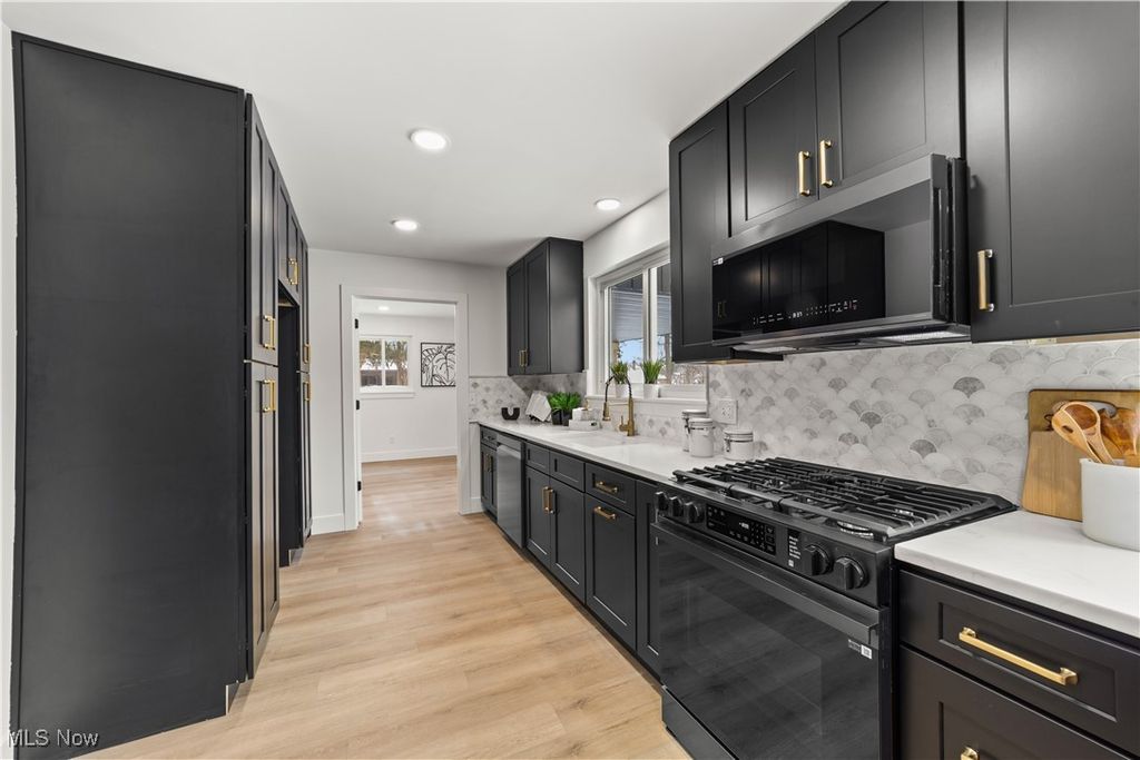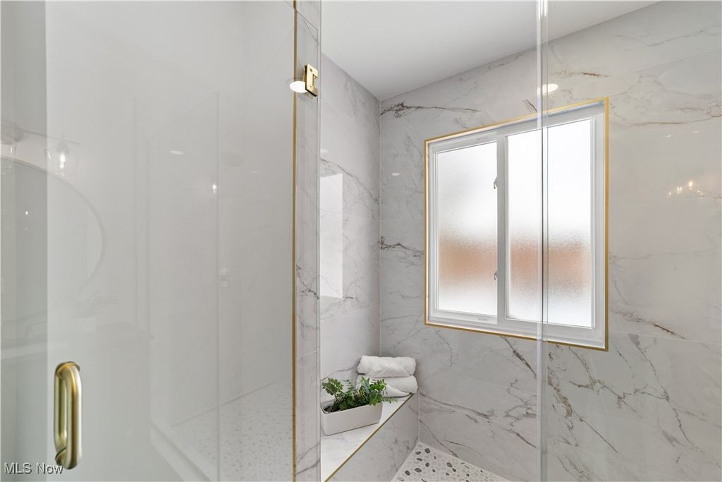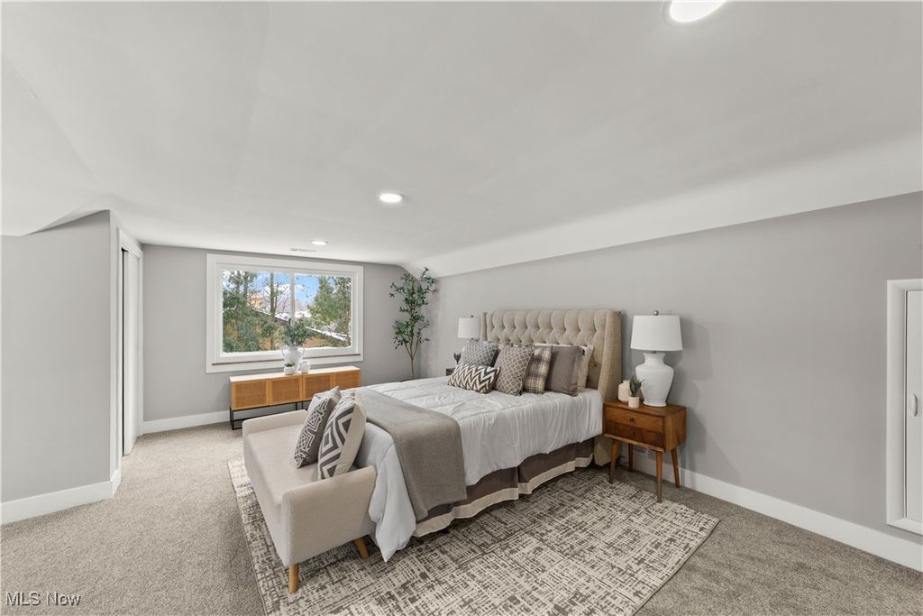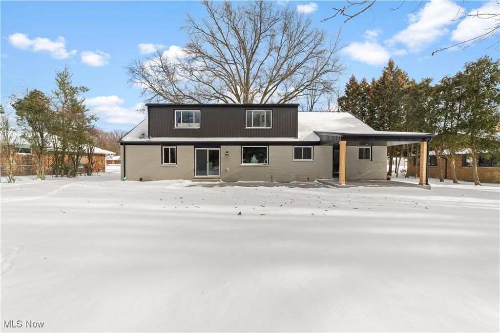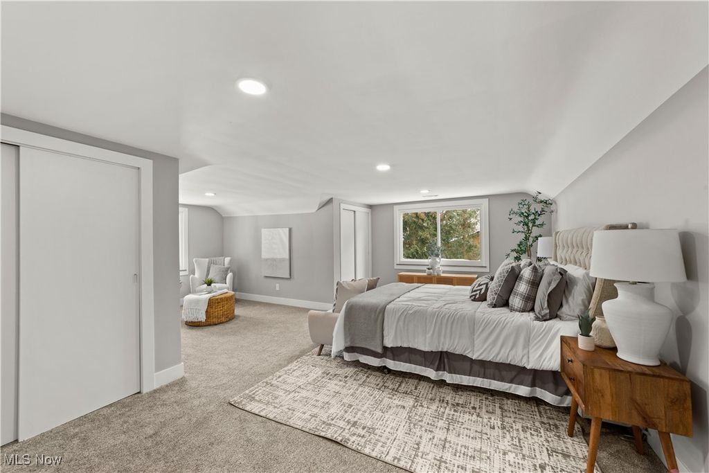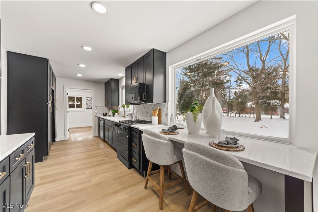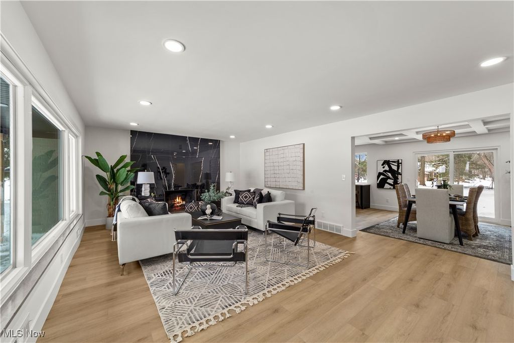 Welcome to this meticulously renovated Craftsman-style colonial, offering 4 bedrooms and 4 full baths on a quiet Rocky River cul-de-sac. Designed with both sophistication and comfort in mind, this home features a striking custom black shaker kitchen with Samsung Bespoke Collection black stainless appliances, quartz countertops, and a designer tile backsplash. The main level is exceptionally functional with a beautifully appointed laundry and mudroom with built-in storage, two spacious first-floor bedrooms, and a refined full bath showcasing a custom tile shower with upscale gold fixtures. A formal dining room with a tray ceiling and curated lighting flows seamlessly into the expansive living room, anchored by a wood-burning fireplace wrapped in custom tile. The second floor offers two large ensuite bedrooms, including a serene primary suite with a reading nook, dual walk-in closets, and a spa-inspired bathroom with an elegantly tiled shower. Comfort is elevated throughout with dual heating and cooling systems and a fully finished basement providing additional flexible living space. Outside, a covered concrete patio overlooks the generous backyard bordered by mature trees for privacy. Additional highlights include a two-car attached garage, a new roof installed in 2025, and full waterproofing completed in 2025. Ideally situated near Kamm's Corners and within walking distance to Rocky River Park, this home provides quick access to I-480 and I-71, as well as the area's best dining, shopping, and entertainment. A rare opportunity to own a thoughtfully updated, high-quality home in one of Rocky River's most desirable neighborhoods.