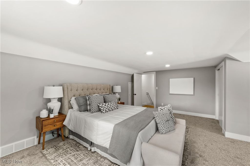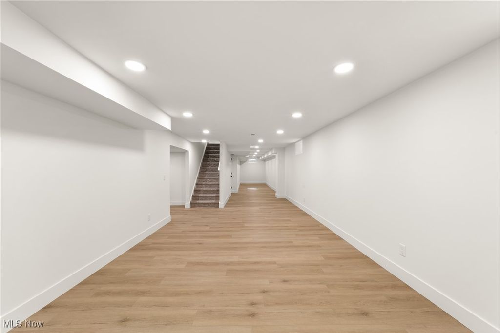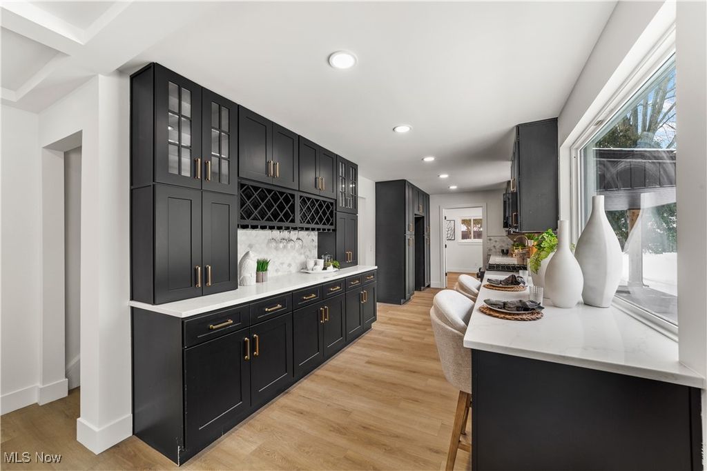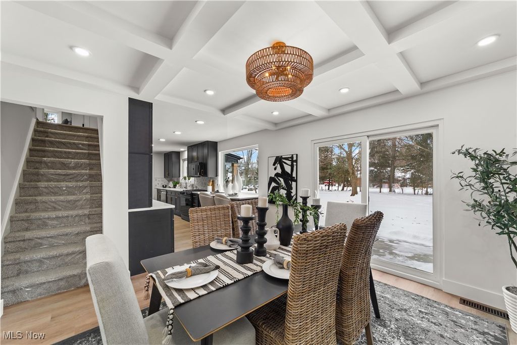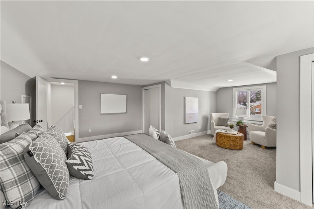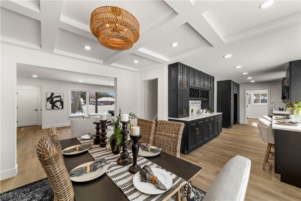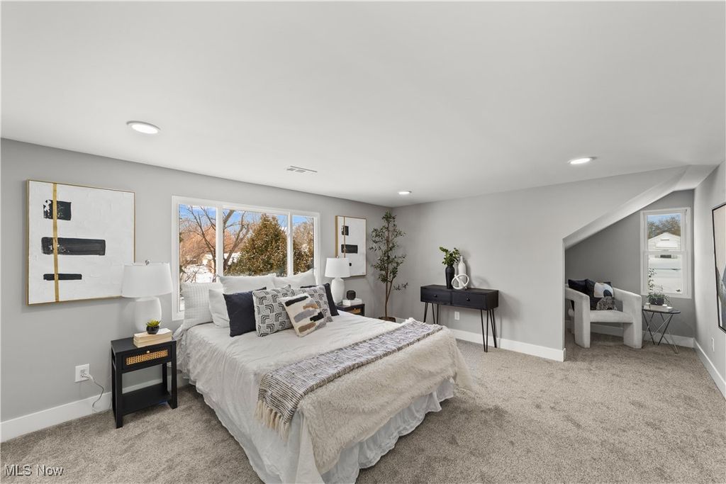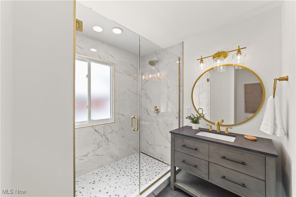 Welcome to this meticulously renovated Craftsman-style colonial, offering 4 bedrooms and 4 full baths on a quiet Rocky River cul-de-sac. Designed with both sophistication and comfort in mind, this home features a striking custom black shaker kitchen with Samsung Bespoke Collection black stainless appliances, quartz countertops, and a designer tile backsplash. The main level is exceptionally functional with a beautifully appointed laundry and mudroom with built-in storage, two spacious first-floor bedrooms, and a refined full bath showcasing a custom tile shower with upscale gold fixtures. A formal dining room with a tray ceiling and curated lighting flows seamlessly into the expansive living room, anchored by a wood-burning fireplace wrapped in custom tile. The second floor offers two large ensuite bedrooms, including a serene primary suite with a reading nook, dual walk-in closets, and a spa-inspired bathroom with an elegantly tiled shower. Comfort is elevated throughout with dual heating and cooling systems and a fully finished basement providing additional flexible living space. Outside, a covered concrete patio overlooks the generous backyard bordered by mature trees for privacy. Additional highlights include a two-car attached garage, a new roof installed in 2025, and full waterproofing completed in 2025. Ideally situated near Kamm's Corners and within walking distance to Rocky River Park, this home provides quick access to I-480 and I-71, as well as the area's best dining, shopping, and entertainment. A rare opportunity to own a thoughtfully updated, high-quality home in one of Rocky River's most desirable neighborhoods.