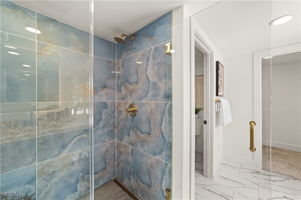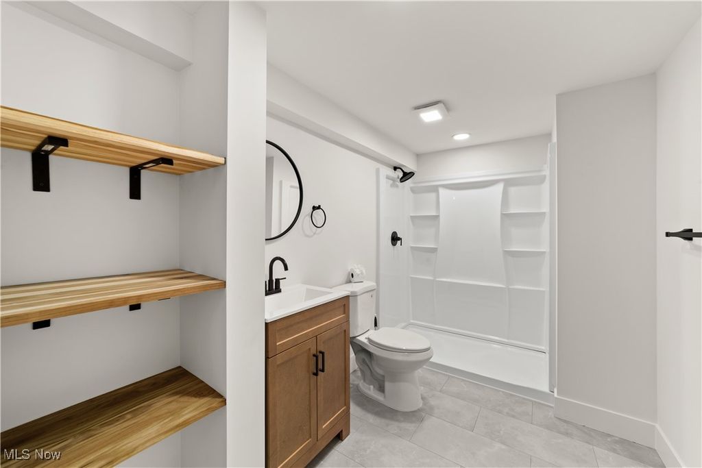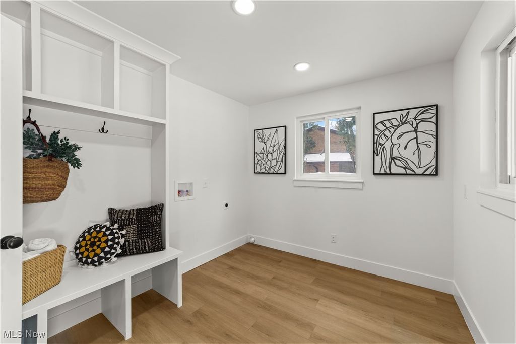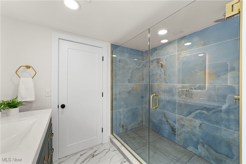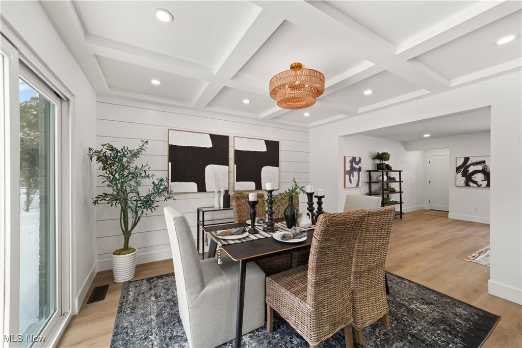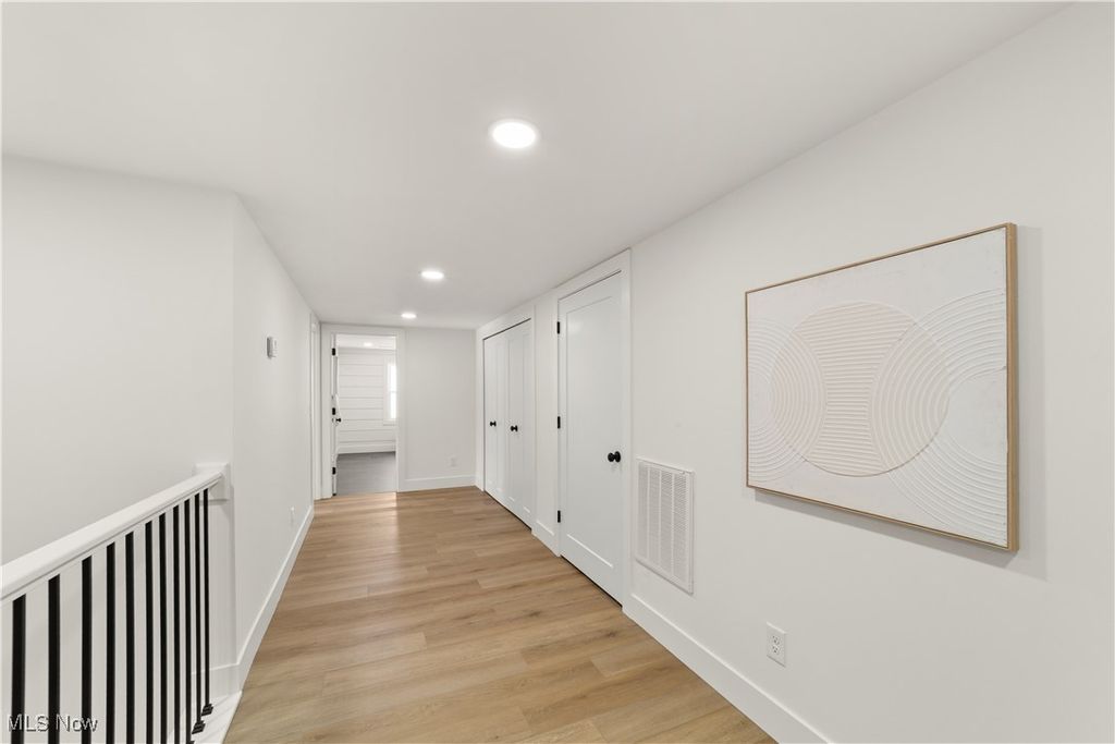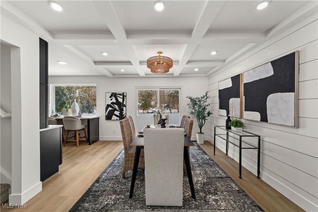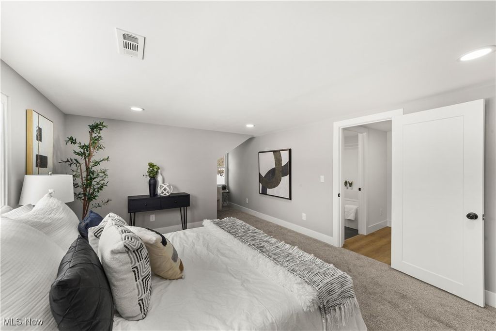 Welcome to this meticulously renovated Craftsman-style colonial, offering 4 bedrooms and 4 full baths on a quiet Rocky River cul-de-sac. Designed with both sophistication and comfort in mind, this home features a striking custom black shaker kitchen with Samsung Bespoke Collection black stainless appliances, quartz countertops, and a designer tile backsplash. The main level is exceptionally functional with a beautifully appointed laundry and mudroom with built-in storage, two spacious first-floor bedrooms, and a refined full bath showcasing a custom tile shower with upscale gold fixtures. A formal dining room with a tray ceiling and curated lighting flows seamlessly into the expansive living room, anchored by a wood-burning fireplace wrapped in custom tile. The second floor offers two large ensuite bedrooms, including a serene primary suite with a reading nook, dual walk-in closets, and a spa-inspired bathroom with an elegantly tiled shower. Comfort is elevated throughout with dual heating and cooling systems and a fully finished basement providing additional flexible living space. Outside, a covered concrete patio overlooks the generous backyard bordered by mature trees for privacy. Additional highlights include a two-car attached garage, a new roof installed in 2025, and full waterproofing completed in 2025. Ideally situated near Kamm's Corners and within walking distance to Rocky River Park, this home provides quick access to I-480 and I-71, as well as the area's best dining, shopping, and entertainment. A rare opportunity to own a thoughtfully updated, high-quality home in one of Rocky River's most desirable neighborhoods.