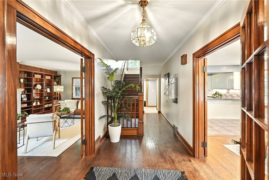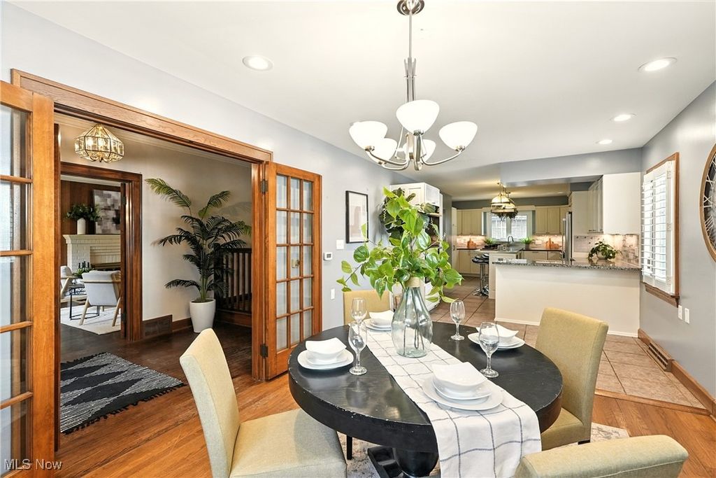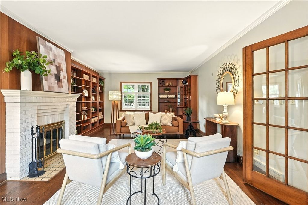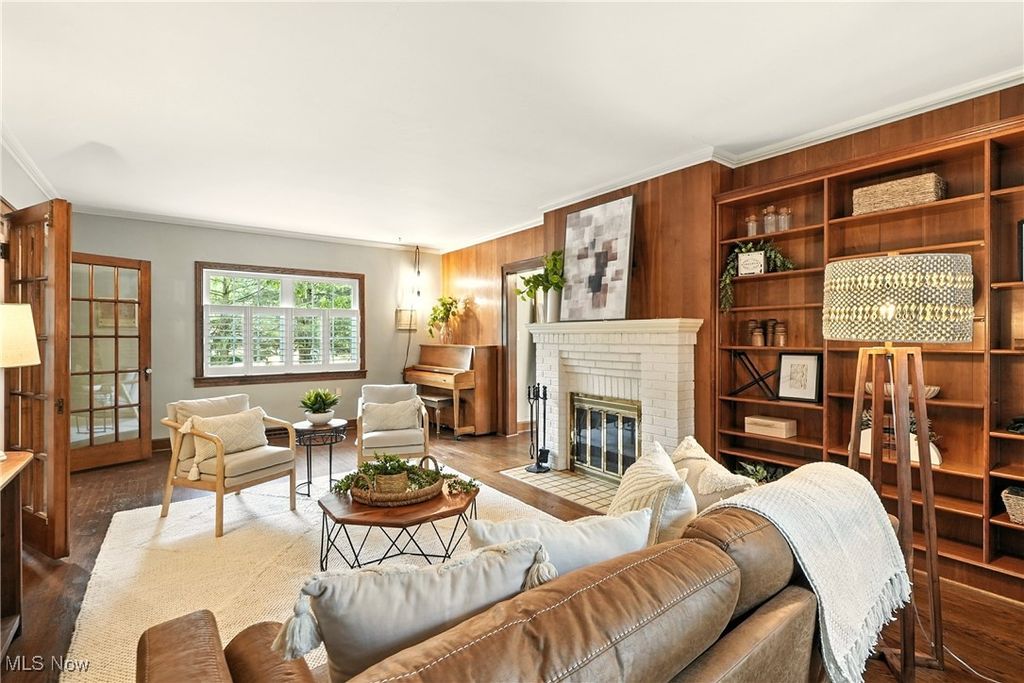 Stately Tudor charm meets modern comfort in this exceptional corner-lot home, thoughtfully updated while preserving its timeless character. Spanning four levels and offering over 4,000 sq. ft. of finished living space, this residence features five bedrooms and five-and-a-half baths, highlighted by rich hardwood floors, custom built-ins, and classic French doors throughout. The completely remodeled kitchen is a chef's dream, showcasing abundant cabinetry, stainless steel appliances, a double oven, and an expansive dining area ideal for entertaining and everyday gatherings. The centrally located living room features elegant built-in bookcases, while the adjacent home office or playroom is flooded with natural light from two walls of windows. The lower level has been professionally waterproofed and includes a transferable warranty, along with contractor-completed improvements that enhance the space for comfortable, functional living, perfect for recreation, hobbies, or additional flex space. Upstairs, the recently renovated owner's suite impresses with a spa-like bath featuring heated floors for year-round comfort. Three additional bedrooms, each with its own private full bath, complete the second floor. The third floor offers a spacious open-concept room with generous storage and a full bath, making it ideal for a guest suite, media room, or creative retreat. Additional highlights include newer windows with a lifetime warranty, a whole-home generator for peace of mind, and beautiful outdoor spaces featuring a patio accented with Wooster paver bricks, a screened-in gazebo, and lush landscaping. The detached three-car garage includes upper-level storage, perfect for an art studio, workshop, or hobby room. This remarkable home seamlessly blends historic elegance with modern convenience and is truly ready for its next chapter. Schedule your private showing today,this one is sure to impress.