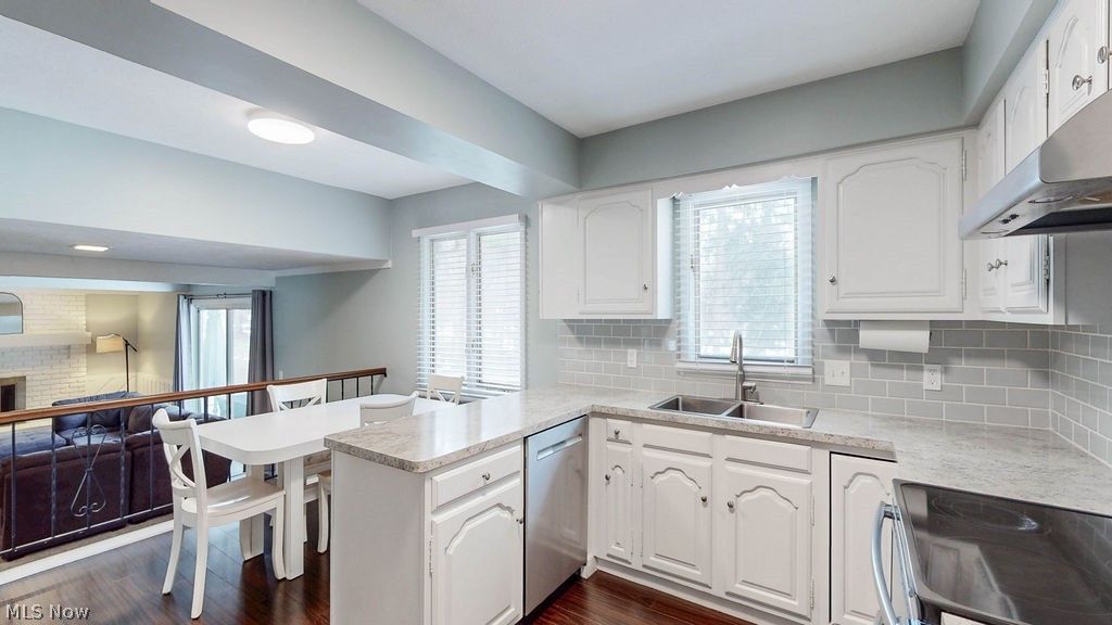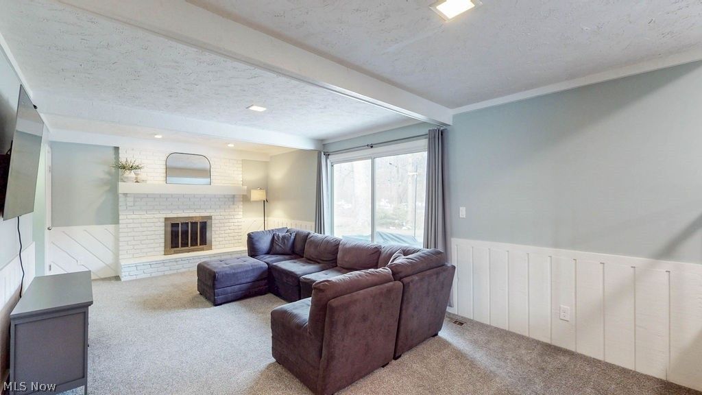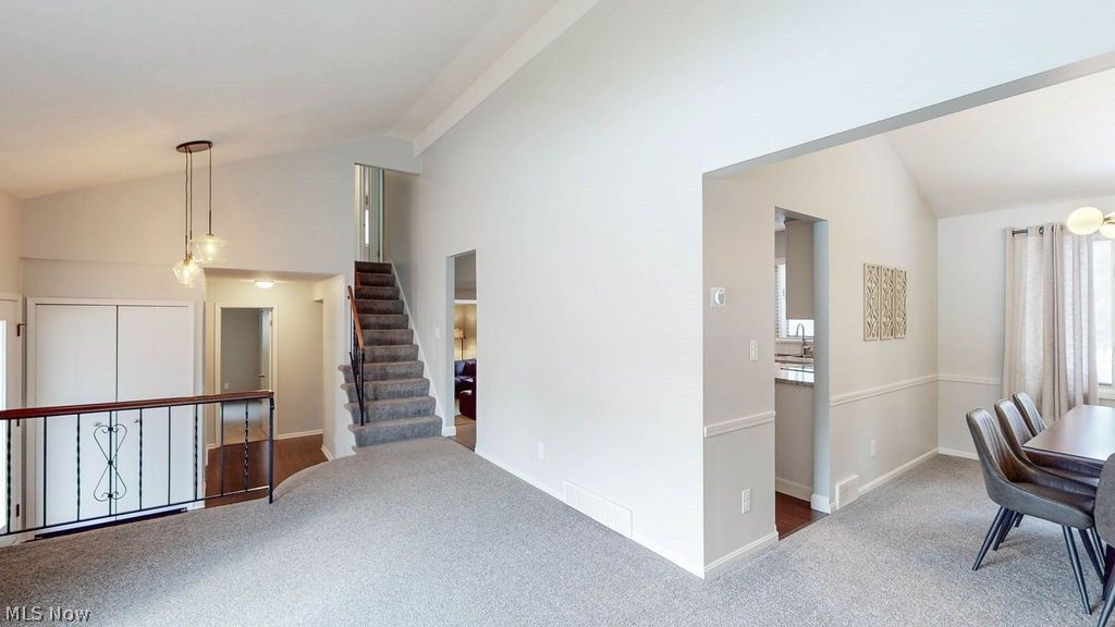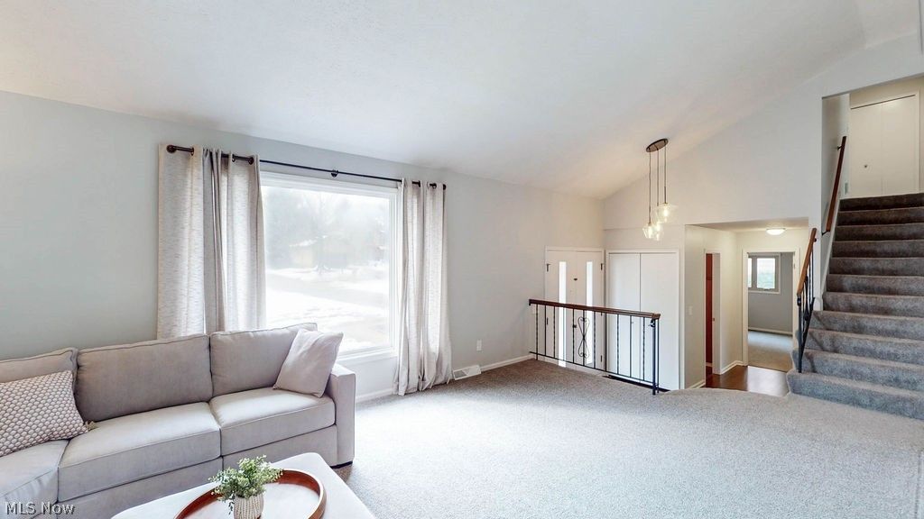 Welcome to this meticulously maintained split level home in North Solon! Enter the front doorway and step up to the light filled living room with a vaulted ceiling and soft wall to wall carpeting. Ideal for entertaining family and friends, this open space leads to the formal dining room with a beamed cathedral ceiling. The well equipped kitchen has stainless steel appliances including a Frigidaire refrigerator (2026), Maytag dishwasher and G.E. electric range (both 2019) with a double oven! A casual dining area is found here as well and overlooks the comfortable family room with the same soft carpeting, beamed ceiling, wood burning fireplace and slider to the patio and private yard. This main floor plan also offers a first floor bedroom and full bath, answering the needs of today's changing lifestyles. Upstairs, the spacious primary bedroom is complete with its own private bath and two additional bedrooms share the hall bathroom. All three have soft wall to wall carpeting and generous closet space. The laundry room is conveniently located on the first floor and the washer and dryer are included! The lower level is neat as a pin with the primary mechanicals including a sump pump and offers plenty of storage space. Many recent updates include some newwer windows, a New Roof 2024, rebuilt chimney 2022, New Furnace, Humidifier & AC 2022, washing machine, battery back up for sump pump, hot water tank 2021, garage door opener, carpeting and laminate flooring 2019 and electrical breaker box 2018! This delightful home is situated in a convenient location close to highways, Metro parks, highly rated schools and shopping. Nothing left to do but move right in! Welcome Home! (Showings to start Friday Feb. 20!)