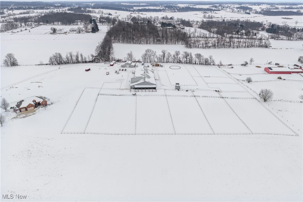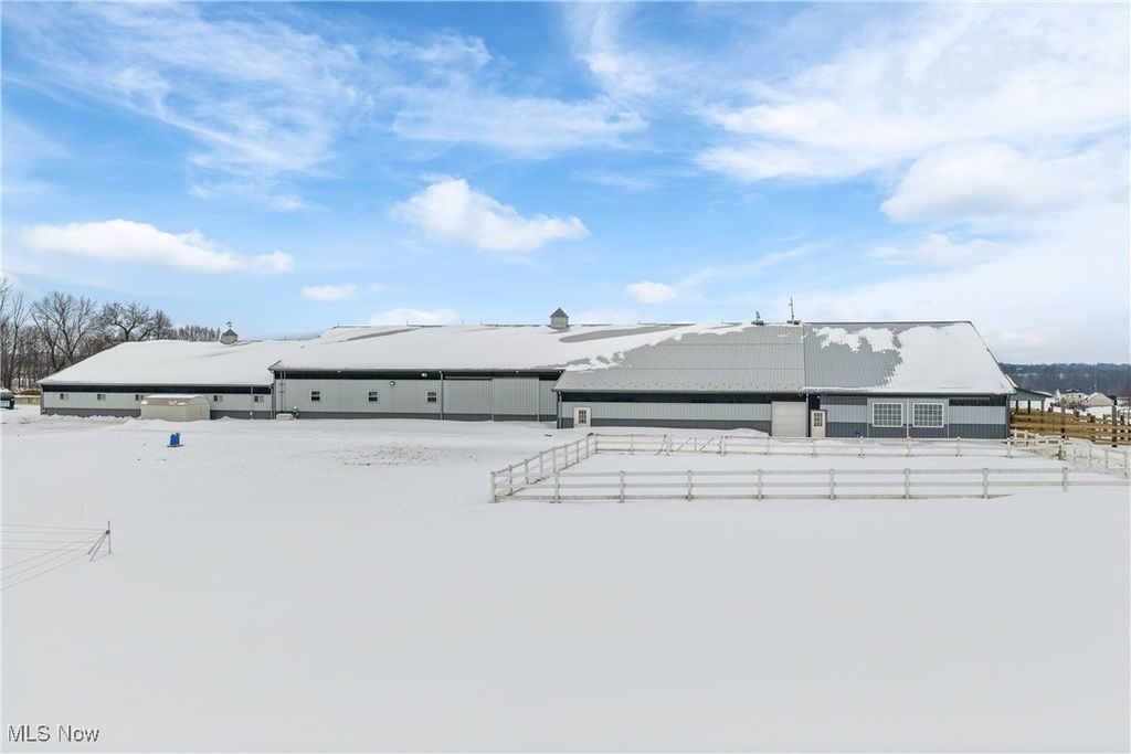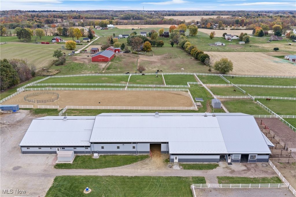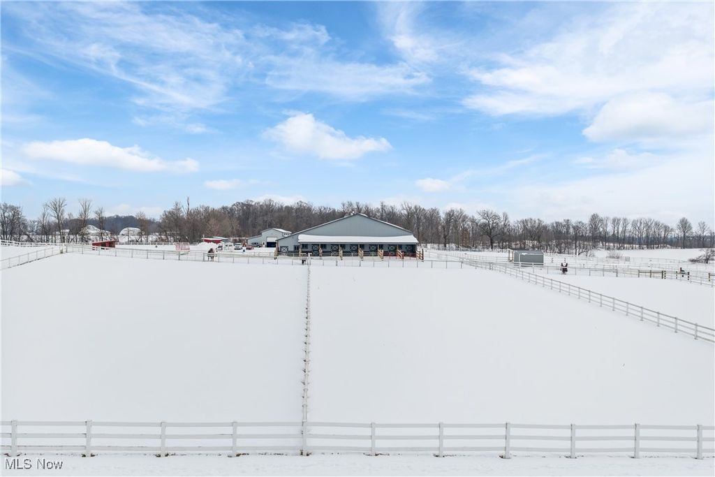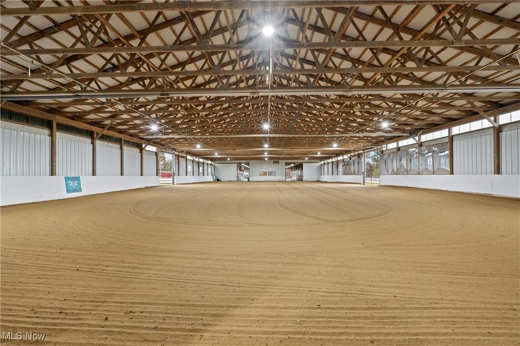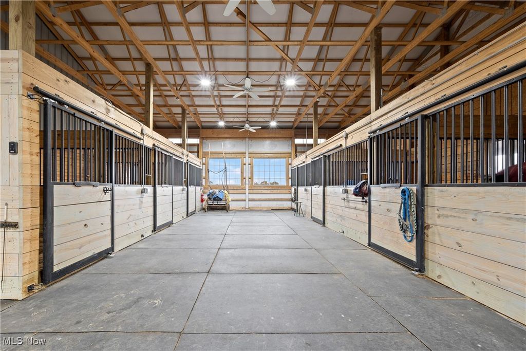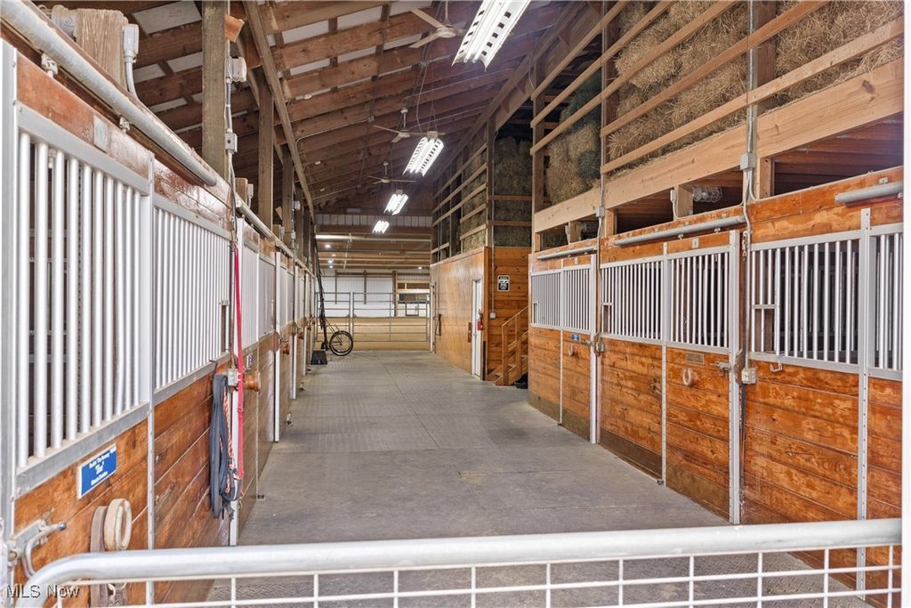 Exceptional opportunity to acquire a premier Northeast Ohio equestrian facility, available as a stand-alone horse property with living quarters or in combination with the existing residence to create a truly turnkey estate (see MLS# 5173790). The horse facilities may be split into a separate parcel, offering flexibility for owner-operators, trainers, investors, or those seeking income-producing equine assets. This professionally designed horse operation spans nearly 30 acres and features over 21,000 square feet of barn space. The main barn offers 28 indoor stalls with rubber-matted floors and heated automatic waterers, some with dutch doors and individual turnout runs, complemented by 8 additional shedrow stalls, six equipped with electricity and water. There are two heated tack/viewing rooms along with heated grooming and wash stalls. Additionally, a laundry and utility room is present along with a heated restroom. The property is thoughtfully laid out with 15+ safely fenced pastures, all with automatic waterers, plus all-weather dry lots designed for year-round usability and pasture management. Riding and training amenities are outstanding, including a 70' x 140' heated indoor riding arena, an expansive 100' x 300' outdoor arena, and a professionally designed mountain trail course"”ideal for conditioning, training, or boarding offerings. Supporting infrastructure includes a dedicated manure management area, clean sawdust storage, and space to store over 2,400 bales of hay, along with 10+ acres of excellent producing timothy/alfalfa hay fields. Additional improvements include an 800 sq ft 1-bedroom / 1-bath apartment perfect for an owner-operator or dedicated for staff. Designed for efficiency, safety, livability, and scalability, this is a rare opportunity to purchase a high-capacity, well-planned equestrian operation"”either independently or as part of a complete horse farm estate.