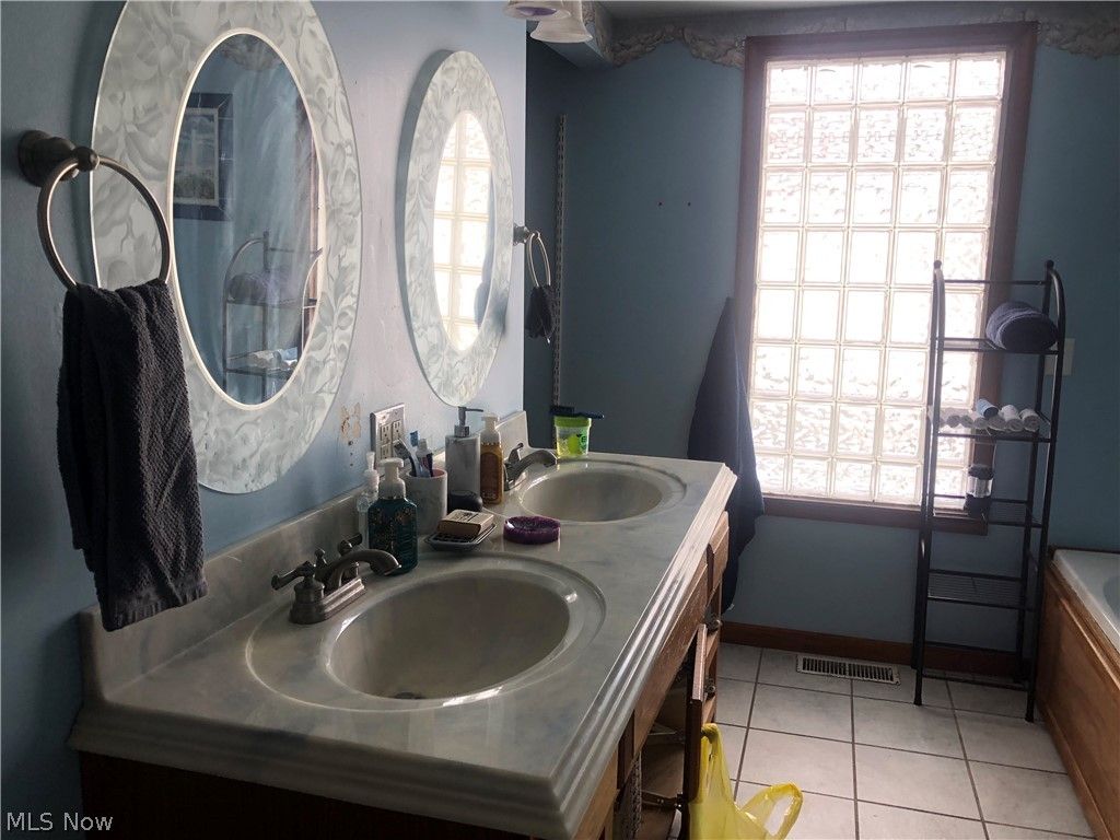 Nice 2 bedroom, 1 bathroom bungalow home in SW Canton. The main level has a large living room with decorative fireplace and bay window, a kitchen with plenty of cabinet and counter top space, an eating area with a door leading to a deck overlooking the back yard, a nice sized 1st floor bedroom with a big walk in closet and a beautiful, updated bathroom with soaking tub, walk in shower, double vanity and a separate toilet and sink area. The upstairs has a huge bedroom with many possibilities. The full basement is partially finished and has a nice rec room and a bonus room that could be a home office or possible 3rd bedroom. There is an attached garage with opener.