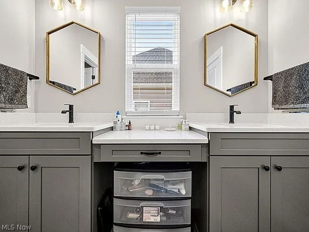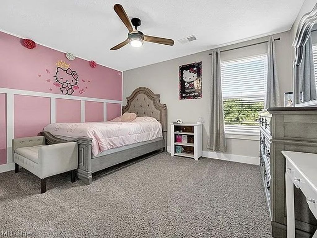 Welcome to 8960 Leatherleaf Rd., Columbia Station, nestled in the sought-after RedFern Trails community! This amazing 4 bedroom, 3.5-bath home boasts an array of modern amenities, thoughtful design elements, and a desirable lot placement with natural boundaries behind the home, providing unparalleled privacy and tranquility. Step inside to an inviting foyer that flows seamlessly into the open floor plan living area. The living room features breathtaking two-story windows that flood the space with natural light and provide serene views. This area connects effortlessly to the eat-in kitchen, complete with quartz countertops, a stylish tile backsplash, a spacious island, and a dining area that leads to the bump-out morning room surrounded by windows. From the morning room, step out onto the back patio, where you'll find a built-in fire pit, perfect for cozy evenings and outdoor gatherings. The natural boundaries and thoughtful lot placement enhance the outdoor experience, creating a private retreat within this desirable community. The first floor also includes a study, a convenient half bath, and a mudroom/office nook with direct access to the 3-car attached garage. Head upstairs to the second-floor and discover a luxurious master suite with vaulted ceilings, a walk-in closet, and a spa-like en suite bath featuring a beautifully tiled shower and dual sink with quartz countertops. Two additional bedrooms, another full bathroom, and a conveniently located laundry room complete the second floor. The finished basement is an entertainer's dream, offering a spacious rec room featuring a bar, a full bathroom, and plenty of storage space. High ceilings, an elegant yet practical layout, premium finishes throughout, and the private and serene lot make this home truly exceptional. Don't miss the opportunity to make this gorgeous property your new home! Schedule your private tour today and discover the unmatched charm of this RedFern Trails treasure.