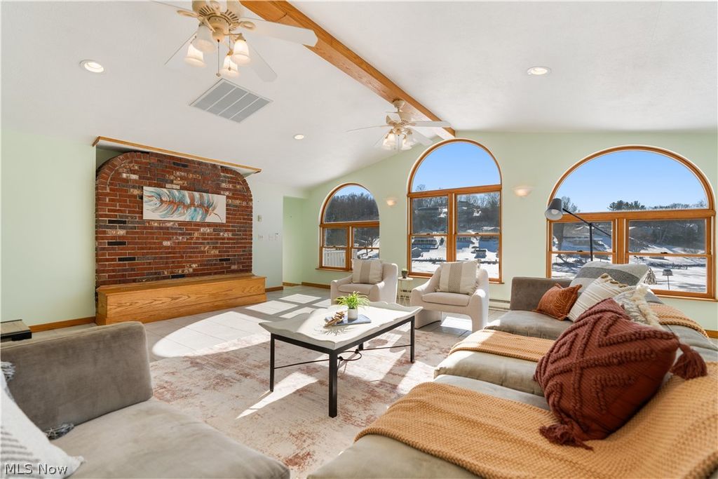 Escape to your own lakefront paradise at 382 East Mohawk Drive. Would you believe that there is a lake front property that has an acre of land to go with it? This stunning, fully staged four-bedroom, three-bath retreat sits on two and a half lush lots along Lake Mohawk's pristine waters. Three docks"”including a rare 40-foot grandfathered pier"”make boating, fishing, and sunset toasts effortless. An in-ground, heated pool, fenced and just steps away, turns lazy days into memories. And room for all the toys!! 5 garage spaces, YES 5 garage spaces: 2 connected to the main house, a two car garage at the top of the drive, and below that, storage for all the pool furniture and summer toys. Inside: open-concept living with beamed ceilings, and wall-to-wall windows that frame endless lake views. The kitchen shines"”granite counters, stainless appliances, breakfast bar. Master suite, large enough to be its own oasis: walk-in closet, and private bathroom. Three guest rooms ready for company. The home's in excellent shape"”move-in ready, low-maintenance exterior, attached garages, detached garages"”but it leaves room to dream: update finishes, add your style, or renovate over time without the pressure. Outside: mature trees, fire pit, patio, and extra lawn for games or quiet. Minutes from Canton, Akron, and I-77, yet totally secluded. This isn't just a house"”it's your private escape. Lake Mohawk has everything you need: a private gated community that has a nine-hole golf course, a marina, pickleball, tennis and volleyball courts, and 3 beaches. The community, docks, pool, two-and-a-half lots, unbeatable views... call for your showing before someone else claims it.