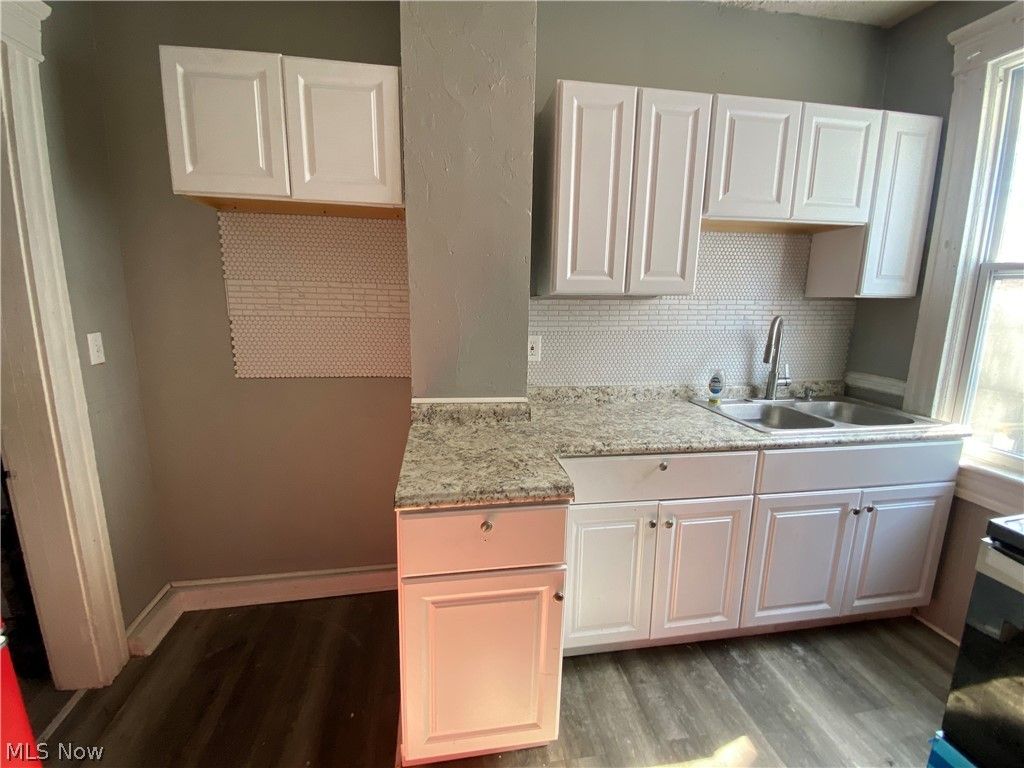 Looking for an investment property that has the heavy lifting done for you? New items include: all the windows, hot water tank, kitchen cabinets and pantry with attractive counters and tiled backsplash in the kitchen, flooring throughout, bathroom tub surround, vanity and toilet. The range and refrigerator will remain. Has good bones, great curb appeal including a lovely wraparound front porch, new full glass storm door in front of the accented red front door and adorable light post. Want to offer your tenants an opportunity to relax, cook out and entertain in the backyard? The backyard fencing is attractive and in shape. Two car parking spaces on the driveway and more on the street. The county website indicates the square footage is 1,212; use due diligence to verify that accuracy. Whether you lease it as a 2 or 3 bedroom home it is generously sized and Rentometerr indicates that rents average $1200-$1500. Property is a little over 2 miles southwest of University Circle with restaurants, entertainment venues and medical facilities. Motivated seller. (Note: Utilities currently off; appliances included as-is).