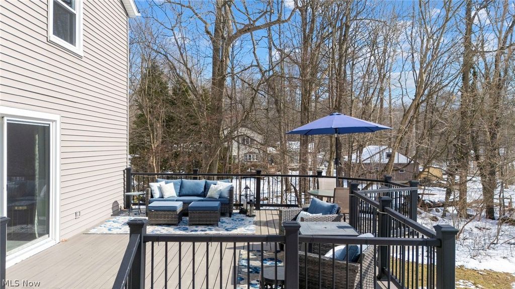 Welcome to 8445 Stoney Brook Dr. Set on a beautifully sized lot backing to a tranquil wooded backdrop, this exceptional four-bedroom residence offers timeless elegance, refined comfort, and a peaceful, park-like setting. A gracious foyer introduces the home's inviting yet sophisticated ambiance. The formal living room flows effortlessly into the formal dining room, creating an ideal setting for entertaining. The spacious family room serves as the heart of the home, showcasing ceiling beams, a charming gas fireplace, and sliding glass doors that open to the deck, blending indoor warmth with outdoor serenity. Designed with both beauty and function in mind, the gourmet kitchen features abundant white cabinetry, a stylish backsplash, granite countertops, and stainless steel appliances, all included. A sunny eat-in area and a beautifully appointed serving and wine station "” complete with cabinetry, a wine rack, and decorative wine-cork backsplash "” add character and charm. A private home office, first-floor laundry room, and half bath complete the main level. Upstairs, the expansive owner's suite is a true retreat, filled with natural light and offering a walk-in closet, spacious vanity with ample storage, and a walk-in shower. Three additional generously sized bedrooms and a full bath provide plenty of space for family or guests. The walk-out lower level extends the living space with a versatile recreation room perfect for movie nights or gatherings, plus ample storage. Outdoors, the expansive backyard opens to a serene wooded setting, creating rare privacy and tranquility. The large deck is ideal for quiet mornings or summer entertaining. Residents also enjoy access to the community pool, tennis courts, pavilion, and all the amenities that Bainbrook / Laurel Springs are known for. Come experience the warmth, elegance, and comfort of 8445 Stoney Brook Dr. and imagine the next chapter waiting to unfold.
