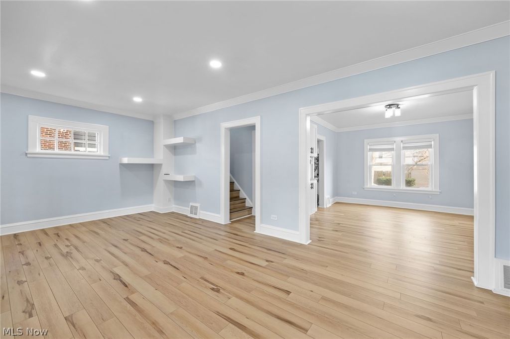 Step into 2153 Northland Ave, a beautifully reimagined Lakewood gem where timeless character meets modern luxury. This fully remodeled four-bedroom home welcomes you with a charming front porch and showcases rich woodwork throughout. Sunlight fills the spacious living room, anchored by a striking shiplap accent wall with a custom tapered chimney-style design, sleek linear fireplace, natural wood floating shelves, and rustic mantel "” creating a warm focal point that blends contemporary comfort with classic farmhouse appeal. The formal dining room is complete with built-in cabinetry ideal for hosting cozy gatherings. The chef-inspired kitchen is a true showpiece, featuring crisp white cabinetry with black hardware, light stone countertops, a deep sink, elegant floating shelves, stylish tile backsplash, and stainless-steel appliances; all included. Upstairs, the owner's suite offers a peaceful retreat with shiplap accents and a cozy fireplace. The spa-like bath elevates everyday living with a modern wood vanity, contemporary lighting, floor-to-ceiling tiled walk-in shower, and a dramatic charcoal accent wall. A versatile bonus room "” perfect for a home office or sitting area "” along with a second bedroom and beautifully updated full bath, completes this level. The third floor offers a spacious bedroom with lofted ceilings and plush carpeting, ideal for guests or a private escape. The lower level provides a convenient laundry area and ample storage space. Outside, enjoy relaxing or entertaining in the backyard, with the added convenience of a detached two-car garage. Recent updates include a new furnace (2025) and a hot water tank (2024). Ideally located near downtown Lakewood, local shops, restaurants, and Lakewood Park, with easy access to Downtown Cleveland, this move-in-ready home is a rare blend of timeless elegance and modern comfort. Call us today to schedule a time to see it