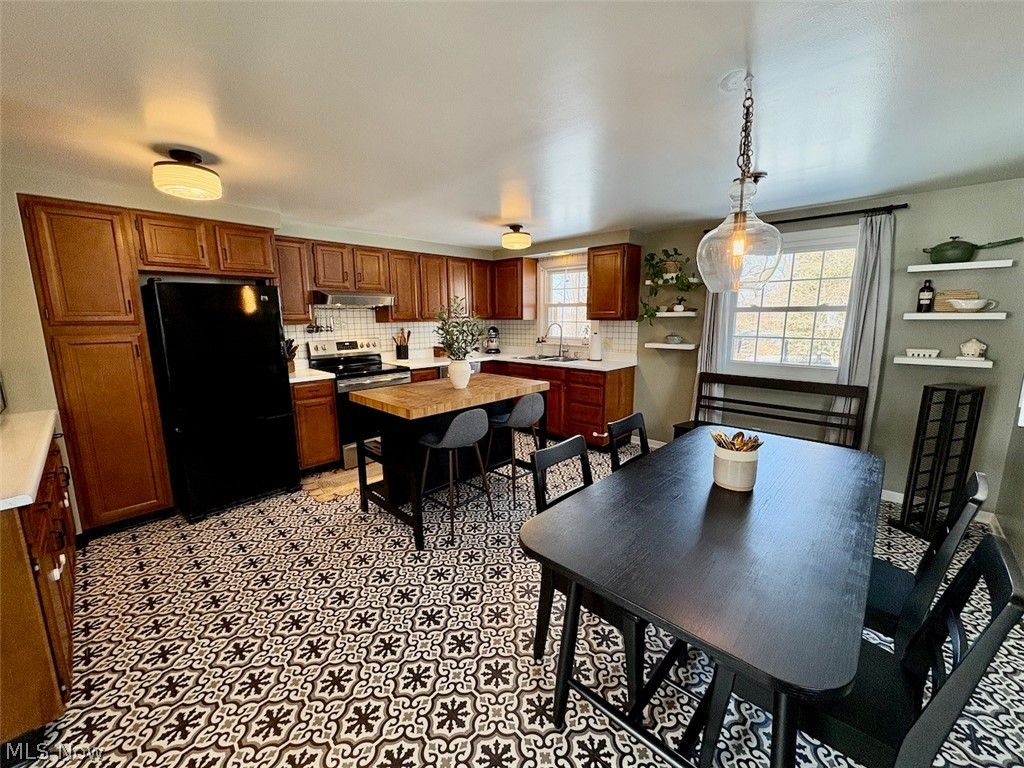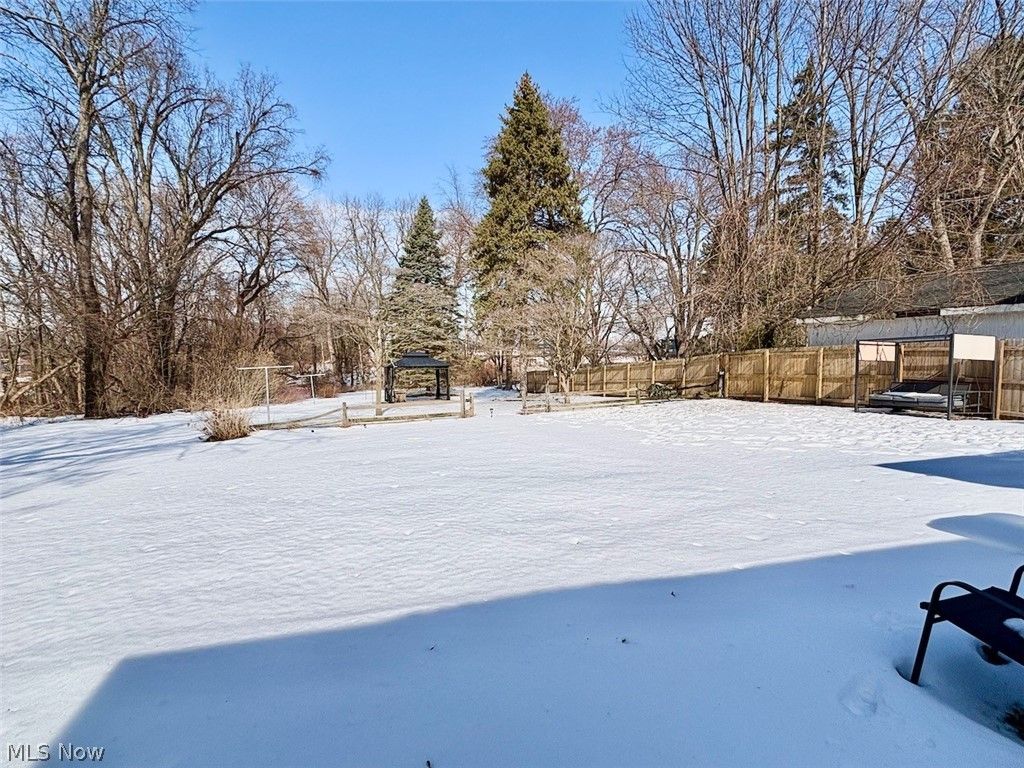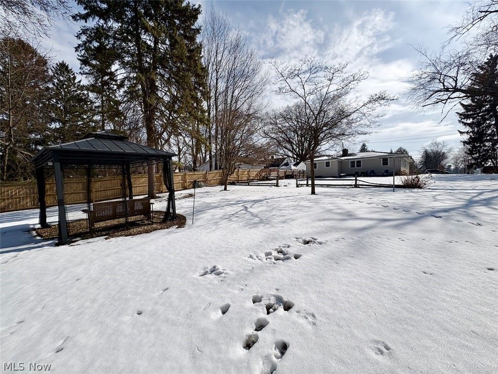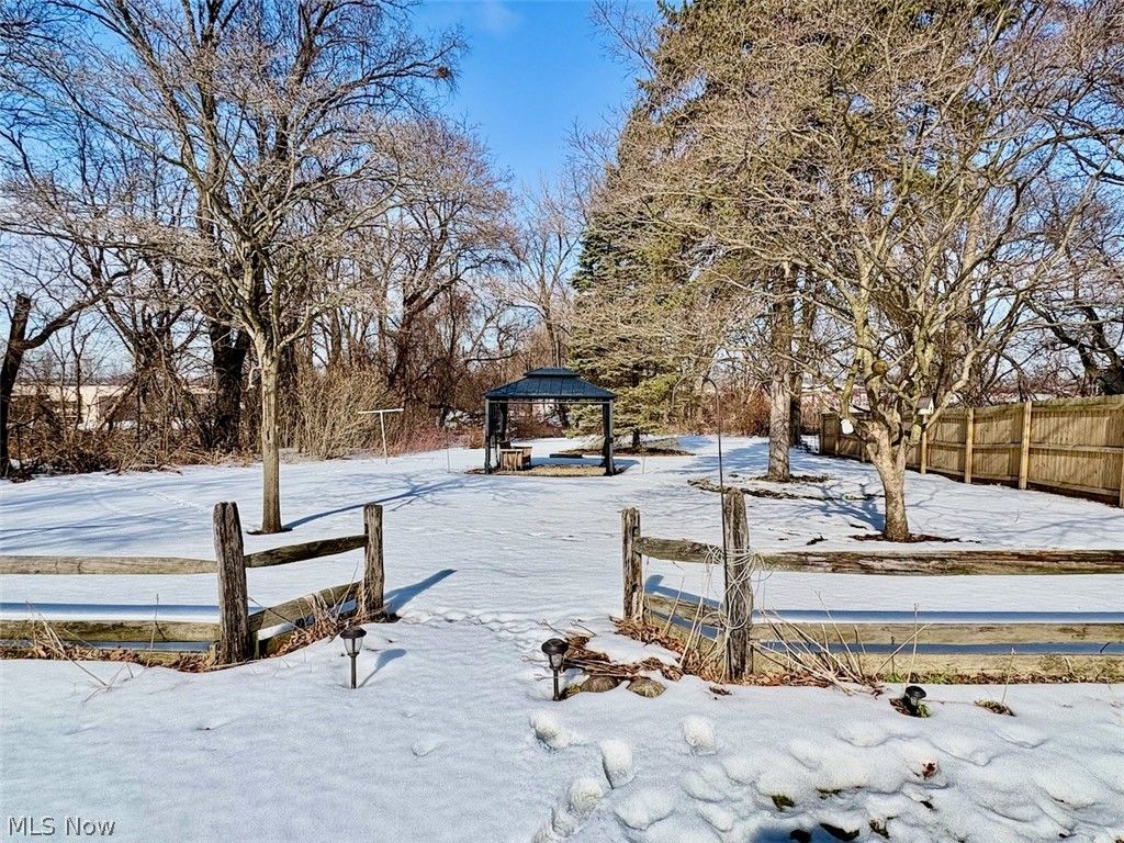 Welcome to 8331 Nowlen Street, a charming ranch nestled in desirable Mentor neighborhood with easy access to shopping, dining, and highways. This nicely updated 3-bedroom, 1-bath home features just under 1,200 square feet of single story living, highlighted by gorgeous hardwood floors and character throughout. The refreshed, large eat-in-kitchen showcases modern appliances and a butcher block movable island. The bathroom has also been modernized with updated quartz countertop, paint, and fixtures. A 30-year shingle roof installed in 2024 provides peace of mind, and the added side privacy fence enhances the outdoor space. Situated on nearly half an acre of gently sloping land, the backyard is an entertainer's dream with a lovely gazebo and fire pit area. The partially finished basement offers even more versatility with a spacious family room, workshop area, and laundry space complete with a shower and utility sink. Move right in and enjoy this lovingly cared for and updated home!