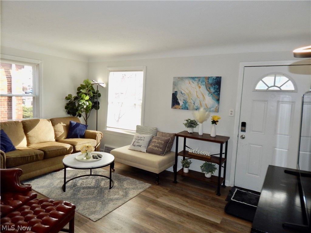 Welcome home to this beautifully updated 2-bedroom, 1-bath brick ranch offering the perfect blend of charm and modern touches. Fresh paint throughout creates a bright, clean feel, while the bathroom features new luxury vinyl plank flooring. This home has been used as a furnished mid-term rental. All furniture is available for sale separately. It currently rents for $2400 - $3000 a month. The kitchen has been refreshed with new white shaker-style lower cabinets, a warm butcher block countertop, and a fun retro light blue refrigerator that adds character and style. Downstairs, the finished recreation room features new carpeting "” ideal for a second living space, home office, or workout area. In the attic, there is an extra 100 sq. ft. that could be used as additional living space if finished. As it stands, there is approximately 650 sq. ft. of extra storage. Major mechanical updates provide peace of mind with a newer air conditioner (2 years), furnace (approximately 5 years), vinyl replacement windows (approximately 10 years), and roof (approximately 8 years). Step outside to enjoy the fenced-in backyard and patio with awning cover "” ideal for relaxing or hosting guests. The attached one-car garage includes a new electric garage door opener for added convenience. The seller is providing a 1-year home warranty for your peace of mind. This move-in-ready brick ranch is the perfect place to call home or hold as a great investment property. The listing agent is related to the seller.