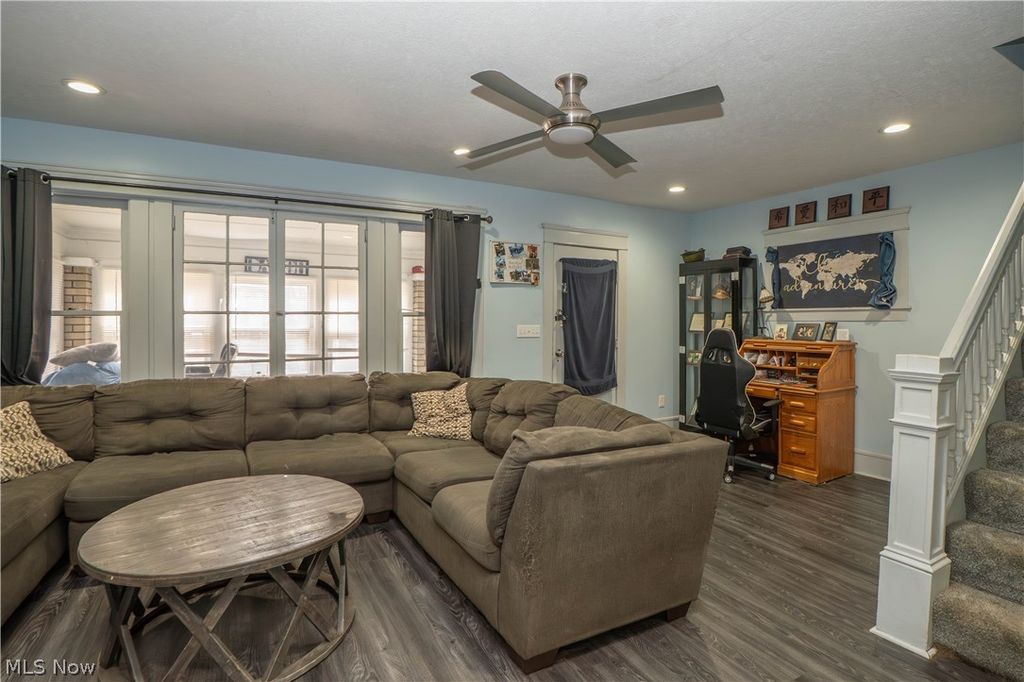 This spacious three-level Colonial offers flexibility, updates, and room to grow! Currently used as a single-family home, this 4-bedroom, 2-bath property also offers potential for a duplex setup with a separate side entrance to the upper level. The main floor features updated laminate flooring, recessed lighting with dimmers, and a bright, open living room complete with ceiling fan and TV mount. The formal dining room includes a new sliding door leading to the fully fenced backyard"”perfect for entertaining. The updated kitchen offers ample cabinetry, laminate flooring, and appliances that convey, including dishwasher, gas range, microwave, and refrigerator. A full bath on the main level showcases tile flooring, a tiled shower with glass doors, and a solid surface vanity. Upstairs, you'll find a second kitchen with laminate flooring and appliances, two bedrooms, and a full bath featuring tile floors, solid surface counters, a jetted tub, and even a Bluetooth speaker. The finished third floor provides two additional bedrooms with built-ins"”ideal for extra living space, home office, or guest rooms. Additional updates include newer windows on the second floor, newer roof (approx. 5 years old with new sheeting and 30-year shingles), new siding, updated PEX plumbing, updated electrical for the whole house with new meter and service from the pole, glass block basement windows, and a newer hot water tank. The unfinished basement includes laundry hookups. Outside, enjoy a fenced backyard, enclosed front porch, patio area, detached 1-car garage off the alley, and additional carport parking. A unique opportunity offering space, versatility with updates"”schedule your showing today!
