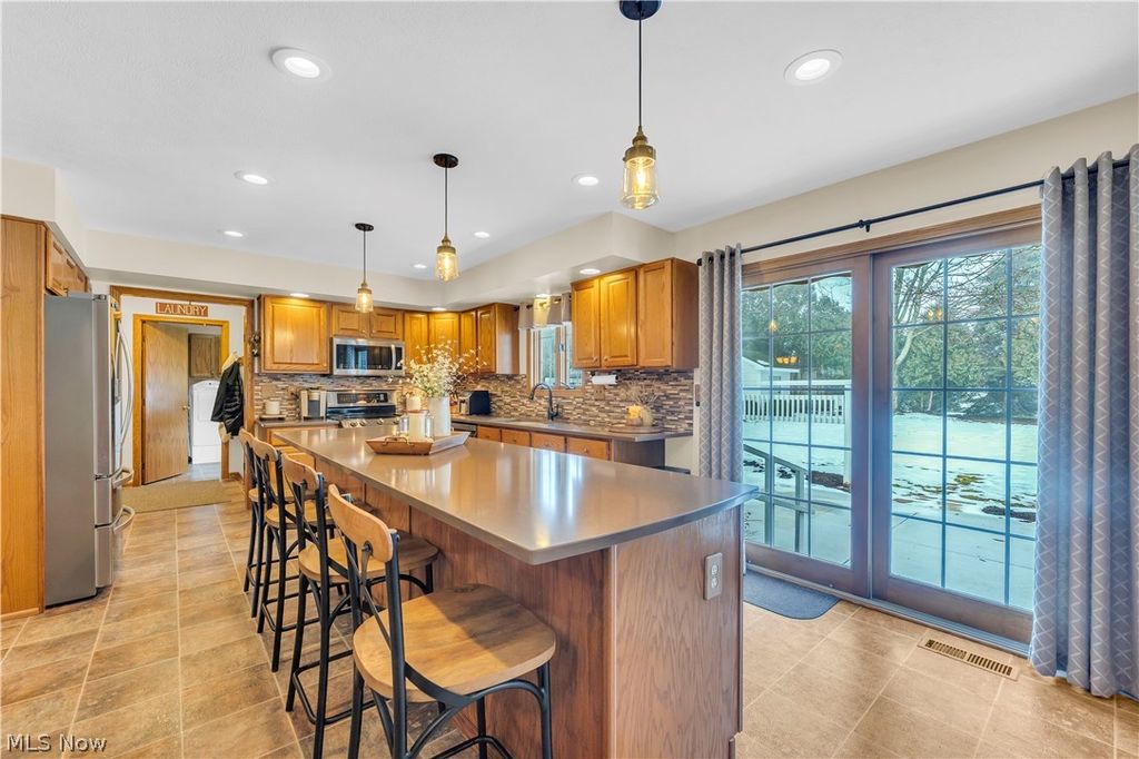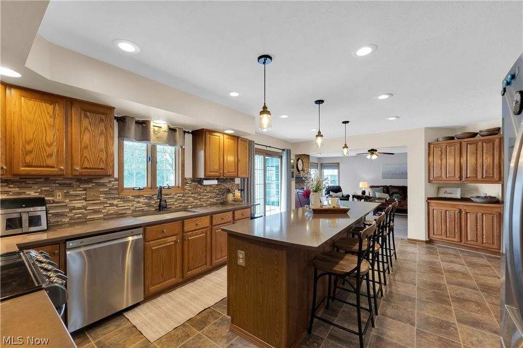 Welcome to this beautifully maintained 4-bedroom, 2.5-bath colonial offering over 3,000 square feet of total living space in the heart of Medina. Lovingly cared for by a long-time owner, this home offers space, functionality, and comfort throughout. The main level features a spacious eat-in kitchen highlighted by an oversized center island, abundant cabinetry, and sliding doors leading to the backyard patio. A first-floor office or bonus room provides flexible space for work or additional living needs, along with the convenience of first-floor laundry. Upstairs, you'll find generously sized bedrooms including a comfortable primary suite. The finished basement adds even more versatility with a large recreation area perfect for entertaining or relaxing with tons of bonus storage. Outside, enjoy the backyard patio and an oversized driveway offering ample parking. Located near schools, shopping, and dining, this home delivers the space and location you are looking for. Schedule your private showing today!