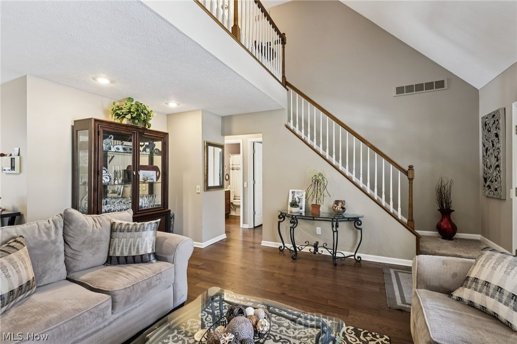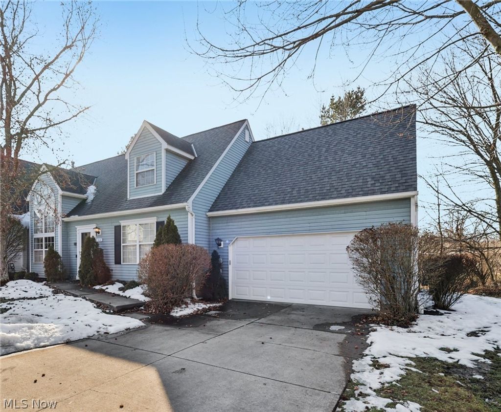Beautifully updated condo filled with natural light and modern finishes. Nearly everything has been refreshed, including new carpet (2024), fresh paint, updated lighting, hybrid laminate/wood flooring (2022), and a new heating and air conditioning system (2024). The neutral color palette complements any style. The main level offers a first-floor bedroom with a walk-in closet and a freshly painted full bath. The open living room features a dramatic two-story arched window, vaulted ceilings, and a cozy gas fireplace. The extra-large eat-in kitchen includes upgraded granite counters and a wall of windows for great natural light, plus space for a full-size dining table. A new sliding glass door (2024) off the kitchen opens to the concrete patio for easy outdoor living. A separate formal dining area adds flexibility. New microwave, and all kitchen appliances have been replaced by the seller. The laundry/mudroom sits off the kitchen and leads directly to the extra-deep two-car garage with abundant room for vehicles, tools, and storage. A man-door provides quick access to the backyard. Upstairs, the lofted living space overlooks the main level and creates a great second living area. A huge upstairs bedroom offers excellent comfort and generous closet space. The updated full bath includes a new walk-in shower. The neighborhood features a rentable party room, shared playground, and scenic sidewalks. With quick access to I-71, the Ohio Turnpike (I-80), and nearby shopping, restaurants, and entertainment, this move-in-ready home delivers comfort and convenience throughout.
