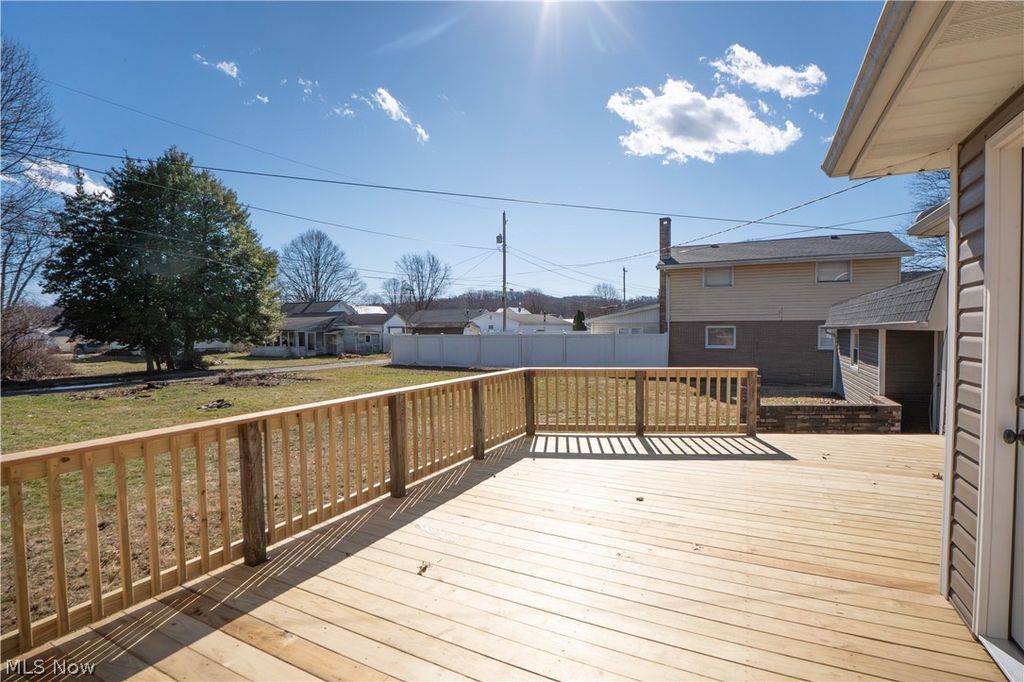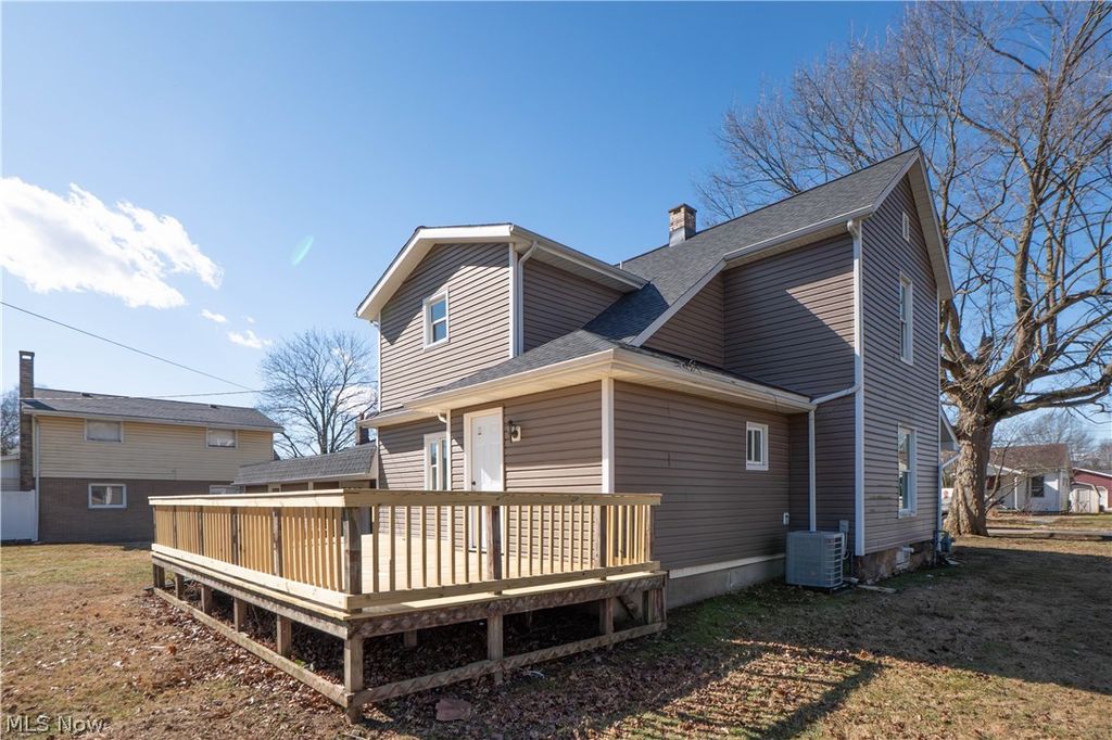 Charming and spacious 2-story Colonial set on a generous 0.36-acre lot in the heart of Newcomerstown! This 3-bedroom, 1.5-bath home blends classic character with thoughtful updates throughout. A welcoming front porch with stately pillars sets the tone as you step inside to find new LVT flooring and carpet, fresh finishes, and two cozy fireplaces that add warmth and charm. The main level features a bright living room with fireplace, a formal dining room perfect for gatherings, and an updated eat-in kitchen complete with painted oak cabinetry, solid surface countertops, island, and stainless steel appliances. A convenient first-floor laundry room with a full bath adds everyday functionality. Upstairs, you'll find three comfortable bedrooms and a half bath. The lower-level family room is a standout with its massive stone fireplace and walk-out access to the backyard"”ideal for entertaining or relaxing. Outdoor living shines with a covered patio, a large partially enclosed deck, and an additional flat patio area with a basketball hoop"”plenty of room for play and hosting. The spacious yard offers endless possibilities, and the attached 2-car garage provides great storage and convenience. There is also an additional rear pad where a second garage previously stood, offering future potential. Major updates include a newer roof, furnace, central air, and siding (approximately a few years old), making this home move-in ready with peace of mind. A solid home with character, space, and updates"”schedule your showing today!