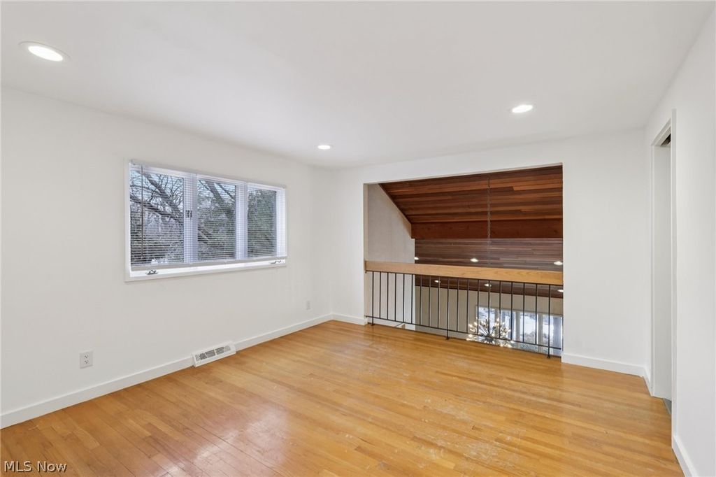 VA-qualified buyers may have the opportunity to assume a 2.875% mortgage rate, adding exceptional value to this standout mid-century modern home in a prime Pepper Pike location (please contact listing agent for details). Set on a flat, private one-acre lot, the home offers architectural character and an open layout. A circular driveway creates an easy arrival, and inside, vaulted wood-paneled ceilings, an open staircase, mid-century lighting, and hardwood floors throughout most of the first floor immediately make an impression. The living room flows into the dining area and into the kitchen, which features warm cabinetry, granite countertops, a neutral palette, and abundant cabinet storage. A wall of glass doors opens to the wraparound deck and expansive backyard. Just off the kitchen, the family room is anchored by a corner gas-burning fireplace and additional glass doors that enhance the indoor-outdoor connection. The first floor also includes a updated half bath, pantry, spacious laundry room, and attached two-car garage. Upstairs, new luxury vinyl plank flooring runs throughout. The vaulted primary suite includes a spacious walk-in closet and private ensuite bath. One bedroom is lofted and could serve as an office or be enclosed if desired. Two additional well-sized bedrooms and a full hall bath complete the upper level. The lower level offers a large, finished room with luxury vinyl flooring, another bathroom, and ample storage. A standalone screened-in structure provides the perfect space for summer evenings and entertaining. Conveniently located near restaurants, shopping, and highway access. Please call listing agent for a private tour!