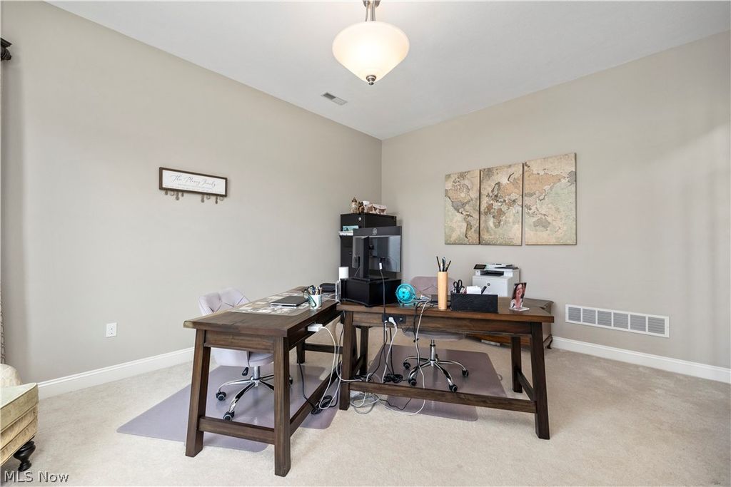 Exceptional luxury living in Angel's Pointe! This meticulously maintained single-story residence offers 2-3 bedrooms and 3 full baths, highlighted by an elegant second-floor bonus area that may function beautifully as a third bedroom, private guest quarters, sophisticated executive retreat, or storage. The upper level is complemented by a full bath, offering flexibility and privacy while enhancing the home's thoughtfully designed layout and refined appeal. A grand tiled foyer with soaring 17-foot ceilings sets the tone, opening into an impressive great room showcasing rich Brazilian walnut flooring and a fireplace. The formal dining room is thoughtfully positioned as its own dedicated space, also featuring beautiful Brazilian walnut floors. Designed for both entertaining and everyday elegance, the open kitchen is beautifully appointed with custom cabinetry, granite countertops, and a stainless appliance package that conveys. Ten-foot ceilings span the remainder of the main level, enhancing the home's spacious, open feel. A front office or flex room with French doors offers privacy and versatility, while the primary suite is nothing short of stunning complete with a tray ceiling, luxurious bath, and generous walk-in closet. A spacious laundry room adds thoughtful functionality. Outdoor living is equally refined with a patio, privacy fencing, and a sprinkler system servicing the front and north side yards. Ideally positioned near Plum Brook Country Club and Osborn MetroPark, and just minutes from the beautiful shores of Lake Erie, Cedar Point, Sports Force Parks, dining, shopping, and entertainment. A distinguished offering in one of the area's most desirable communities, this home will not disappoint!