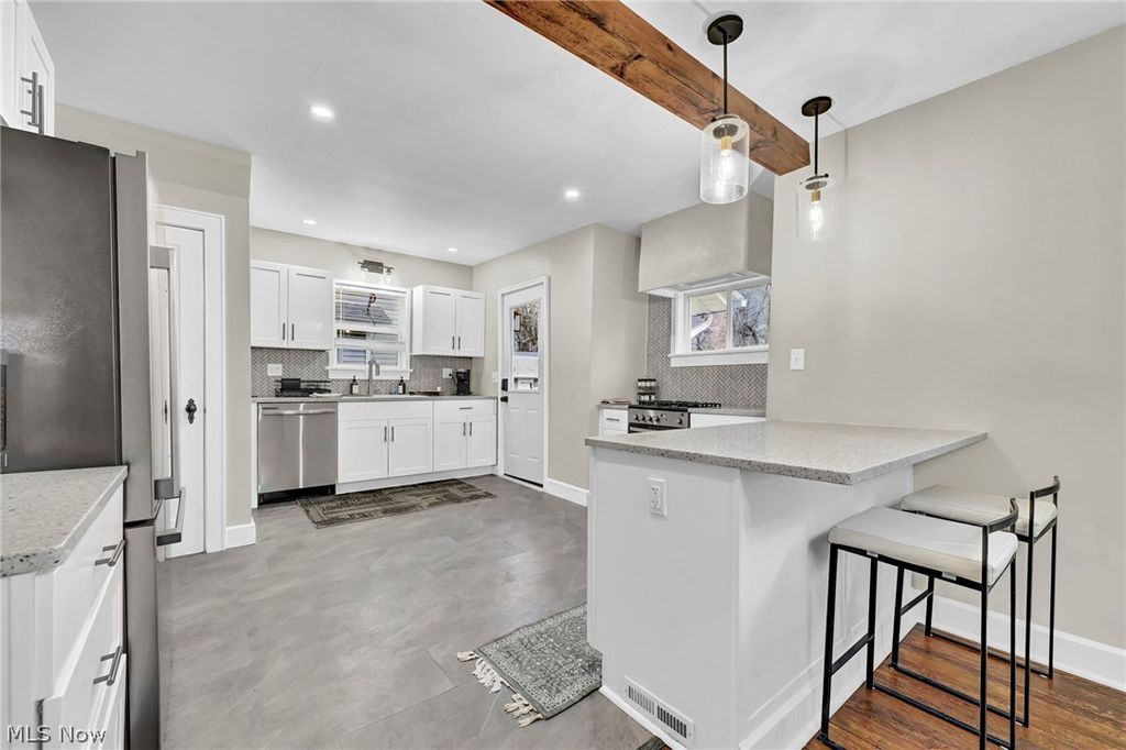 Welcome to this beautifully renovated 3 bedroom home in Akron! Completely updated inside and out, this home features a brand new kitchen, fully renovated bathroom, new roof, new windows, and updated mechanicals, along with stylish finishes throughout. Step inside to find beautifully refinished hardwood flooring flowing through the main living spaces and a clean, modern bathroom with updated fixtures and finishes. The functional layout offers comfortable living with well sized rooms with an open floor plan. Located in a quiet, established Akron neighborhood, this move in ready home offers quality updates and low maintenance living from day one. Schedule your showing today!
