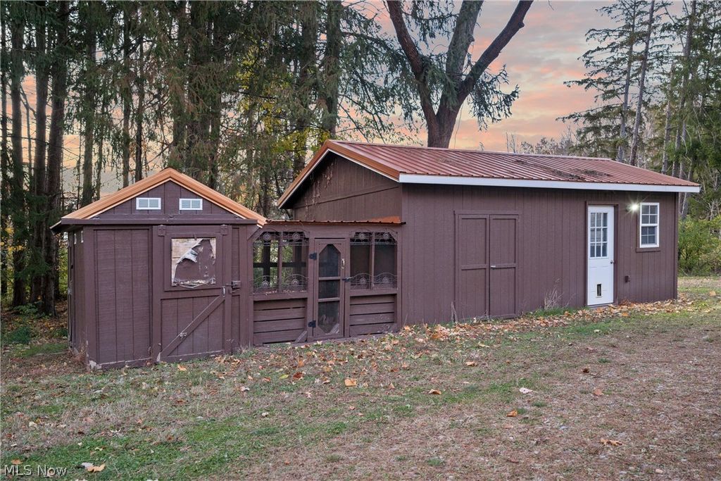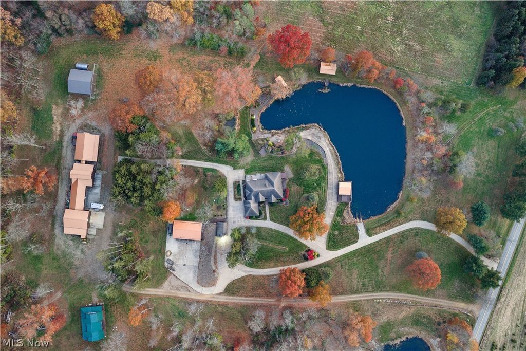 Welcome to peaceful country living on 27 scenic acres featuring stunning pond views and magnificent sunsets that feel straight out of a painting. This exceptionally built all-brick ranch offers quality construction, spacious living areas, and beautiful views from nearly every room. The home includes a fully finished walk-out lower level with private entrance, ideal for multi-generational living, guests, or flexible living arrangements. The property also features two large outbuildings providing ample space for hobbies, storage, equipment, or business use. A second home on the property offers additional possibilities including rental income, guest accommodations, or extended family living. Enjoy privacy and wide-open space while remaining conveniently located less than 30 minutes from Cleveland, Akron, and Canton, offering easy access to shopping, dining, and major highways.