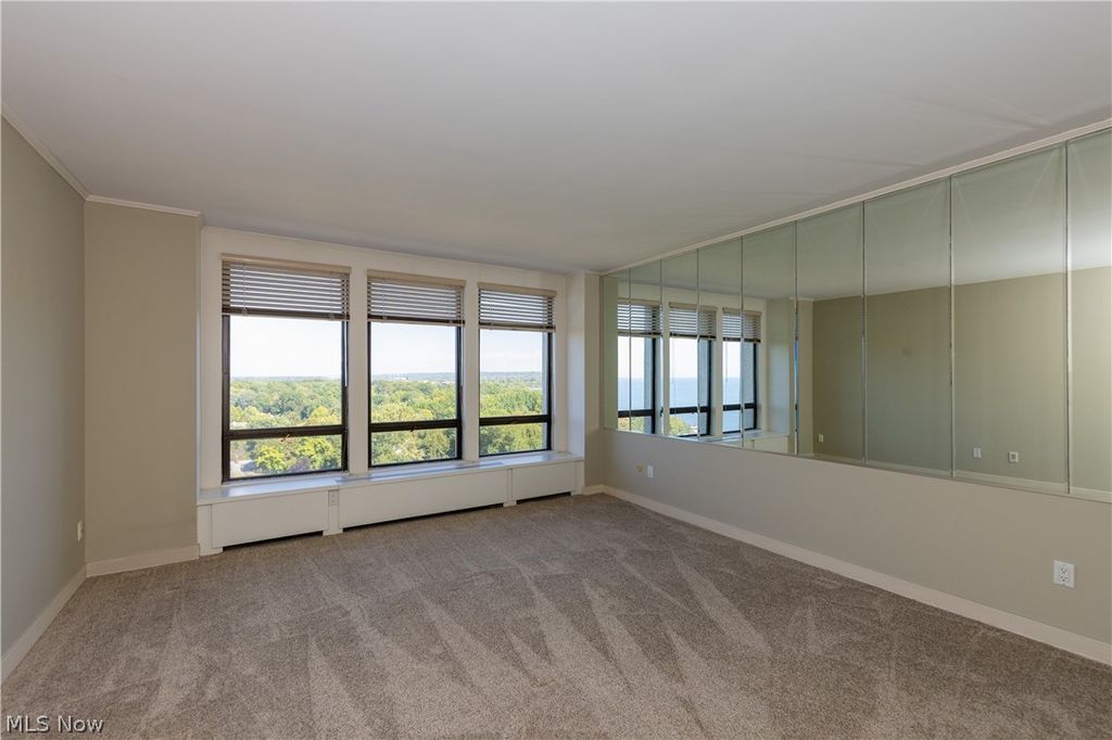 Welcome to Unit 1411 at One Bratenahl Place, a beautifully maintained 2-bedroom, 2-bath. 1567sqft residence offering breathtaking Lake Erie views and true resort-style living. One Bratenahl Place sits on 18 private acres and offers 24/7 gated security with concierge service. Residents enjoy a full suite of amenities including a fitness center, saltwater pool, clay tennis and pickleball courts, walking trails, lakeside fire pit, picnic areas with charcoal grills, beautifully maintained gardens, and an on-site bistro with bar and catering. Additional conveniences include salon and spa services, guest suites, underground heated parking with car wash bay, ATM, and optional in-suite maintenance and housekeeping services. Enjoy expansive water views from the open living and dining areas, with updated sliding glass doors leading to your private balcony, the perfect spot for morning coffee or evening sunsets. The primary suite features a walk-in closet and a full bath with tub and shower. A Euro-style kitchen, generously sized second bedroom, and in-unit storage complete the functional and comfortable layout. Included in rent: Two heated garage spaces and a private storage locker. Plus, all utilities (heat, electric, sewer, trash) cable, and internet. Offering simplified, maintenance-free living. Experience lakefront high-rise living with privacy, security, and everyday convenience, all just minutes from downtown Cleveland. Fair housing accommodations and modifications for persons with disabilities will be considered on a case by case basis in accordance with the fair housing laws.