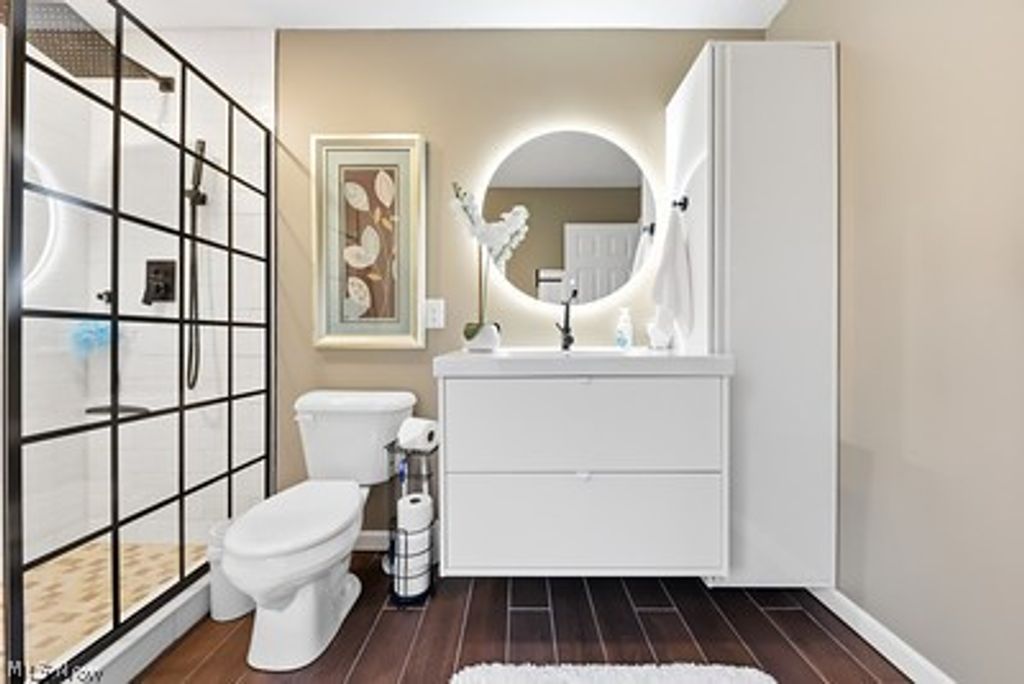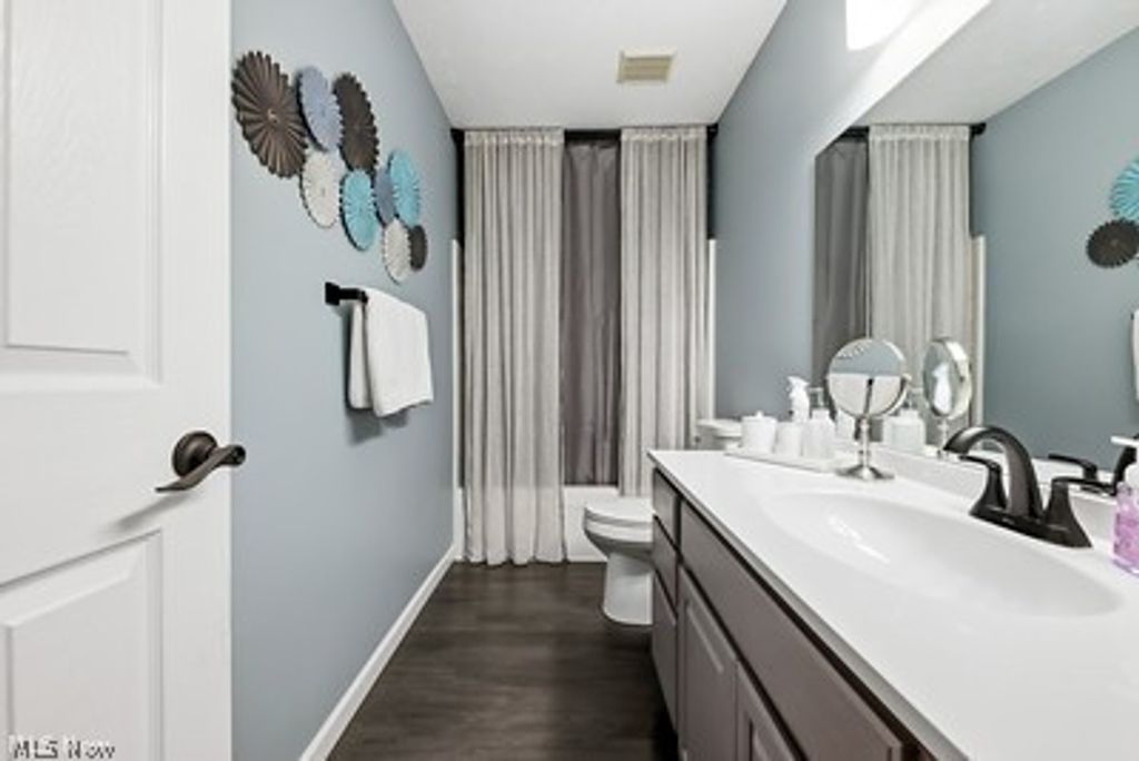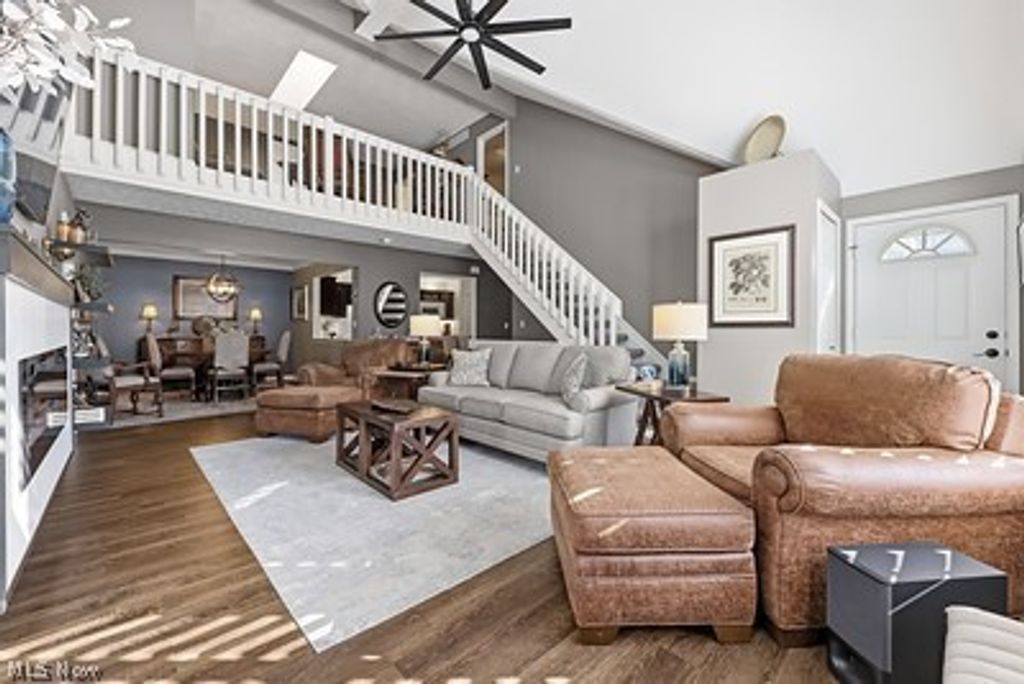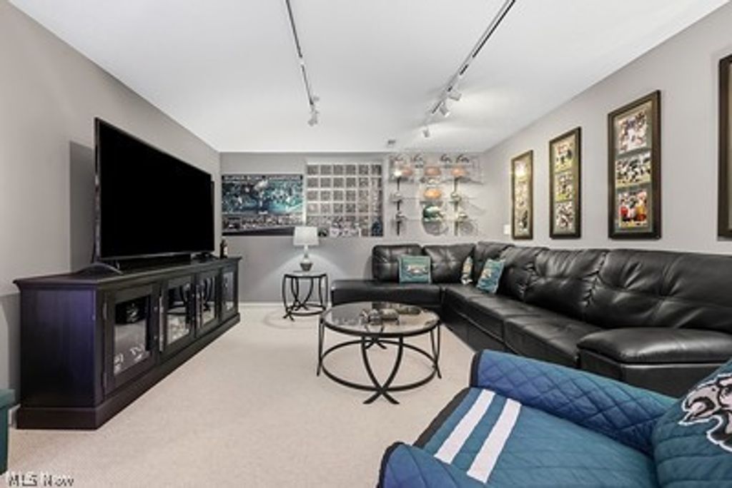 Experience refined, low-maintenance living at 637 Hunters Trail in Akron. This exceptional condo showcases dramatic cathedral ceilings that flood the main living space with natural light and create an impressive sense of scale. The gourmet kitchen is appointed with granite countertops and comes fully appliance, blending elegance with everyday functionality. Thoughtfully upgraded smart lighting enhances ambiance and convenience throughout. The finished lower level expands your living space with a beautifully designed rec room, a private hobby room, and a dedicated fitness area, ideal for entertaining, pursuing passions, or maintaining your wellness routine at home. Offering sophisticated finishes and versatile living spaces, this residence delivers comfort, style, and modern convenience in one remarkable package.