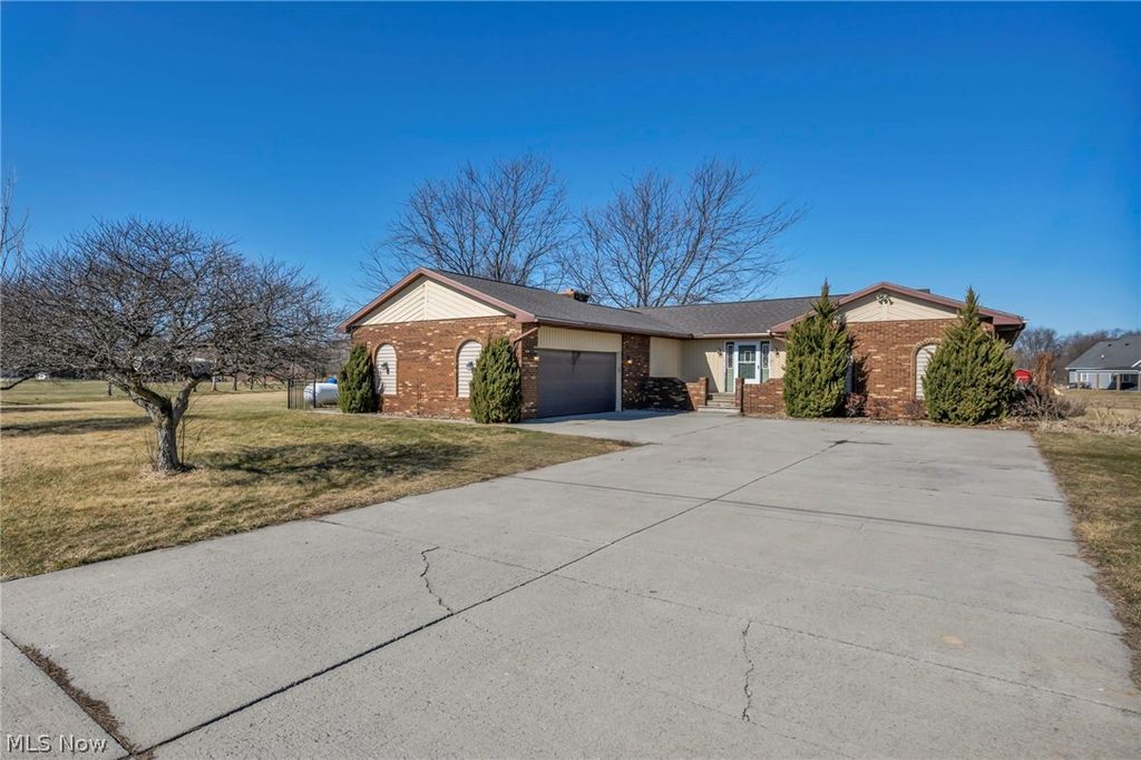 Welcome to 3380 Crandall Rd in Collins! This brick 3-bedroom ranch sits on 2 acres in the Western Reserve School District, offering peaceful country living with room to roam. Inside, you'll find vaulted ceilings, a spacious dining room, and an eat-in kitchen with breakfast bar and stainless steel appliances. Easy access to the patio and fenced-in area perfect for pets or outdoor entertaining. The primary suite features a private ensuite bath. A main-floor laundry room allows for true one-floor living. A finished basement with LVP flooring, a spiral staircase (plus traditional staircase) adds flexible living space for a rec room, office, or gym plus a half bathroom. New hot water tank (2025) and AC (2020) Enjoy privacy, open space, and the charm of rural living with convenient access to nearby amenities.