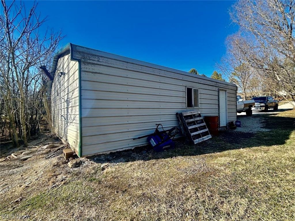 Located in desirable Warren School District, this six acre hobby farm (part cleared, part wooded) offers the ideal setup for country living with room to grow. Tucked into a quiet rural setting, the property provides a blend of open pasture and usable ground--perfect for small livestock, gardening, or 4-H projects. This singe-wide trailer (1993 Sunshine Manufactured Home, 2 Bedroom, 2 Bath) on site overlooking the pond, offers comfortable functional living with an efficient floor plan, making it an excellent primary residence, rental opportunity, or temporary home while you build your dream house. Utilities are already in place, adding convenience and reducing upfront development costs. With ample road frontage, 24 X 30 detached garage with electric, barn with stalls (electric & water) woven wire fencing and sheds, this property is well-suited for those seeking a self-sufficient lifestyle or a manageable mini-farm operation. Whether you're looking to start a small agricultural venture or simply enjoy peaceful rural surroundings, this six-acre tract provides flexibility and potential at an approachable price point. Singlewide, not on permanent foundation. Primary Bedroom and full bath in the process of being renovated, Mud room at the rear of the house needs to have ceiling installed. New windows except for kitchen, Heated with propane gas fireplace and space heater. Gas hookup behind electric stove, Little Hocking water. Remodeling materials included with the sale.