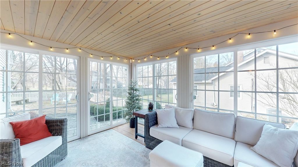 Located in a wonderful neighborhood with sidewalks leading to the Village, this beautifully updated home offers hardwood floors throughout and a flexible floor plan. Upon entry, you are welcomed by a spacious living room featuring a gas fireplace. The updated kitchen includes granite countertops, stainless steel appliances, and a gas cooktop, and opens to a generous dining area with a second gas fireplace and a slider leading to a bright and inviting sunroom. A light-filled office with built-ins and a desk and provides the perfect work-from-home space. Down the hall, a full bath sits adjacent to an additional room that could easily serve as a fourth bedroom, formal dining room or flex space. Upstairs you will find three generously sized bedrooms, including the primary suite with a large en-suite bath. The remaining two bedrooms share the third full bath. The lower level offers even more flexible living space with a rec room, laundry room, workshop and abundant storage. Step outside to enjoy the beautiful stone patio-perfect for relaxing or entertaining. All of this just moments from everything the Village of Chagrin Falls has to offer. Don't miss this wonderful opportunity to own a home that has been thoughtfully cared for and responsibly maintained where the owners have consistently invested in preventative care and system upkeep, offering true peace of mind for the next owner. List of updates available in the MLS or contact agent.