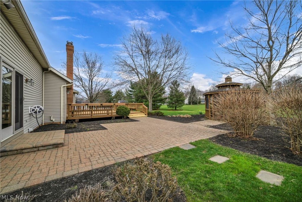 Is there a 4-bed home in Medina with a finished basement, first-floor owner's suite, and private outdoor space near parks and downtown? This Montville Farms colonial offers over 4,900 finished sqft, major updates,and flexible living areas. Welcome to 1166 Brandywine Dr, a 4-bed colonial in Medina offering 2,901 sqft plus 2,064 sqft of finished basement space in the desirable Montville Farms neighborhood with no HOA! Set on a .46-acre lot, this home combines open-concept design with functional living. The vaulted great room features skylights with remote blinds, a gas fireplace, and dual sliders to the deck, creating seamless indoor-outdoor flow. A designated dining area allows everyone to be part of the party whether you are dining or relaxing by the fire. The eat-in kitchen offers ample cabinetry, tile flooring, and a bright bay of new windows overlooking the backyard. A vaulted office with closet provides flexibility as a fifth bedroom. The first-floor owner's suite includes private access to a paver patio and gazebo, along with an ensuite bath featuring a skylight, double vanity, jetted tub, separate shower, and walk-in closet. The first floor laundry room is perfectly placed both close to the primary suite and garage. Upstairs, you'll find three additional bedrooms with generous closets and a full bath with double vanity. The finished basement expands your living space with a large open area, two additional room spaces, wet bar, beverage fridge, full bath, cedar-lined closet, and abundant storage. Outdoor living shines with a large deck, paver patio, gazebo and yard backing to green space that will not be developed. A side-load 3-car garage and extended parking pad add everyday convenience. Major updates include furnace 2021, roof 2018, hot water tank 2018, skylights 2018, and kitchen windows 2025. Located in Medina City Schools and minutes from parks, Historic Medina Square, shopping, dining, and local attractions.