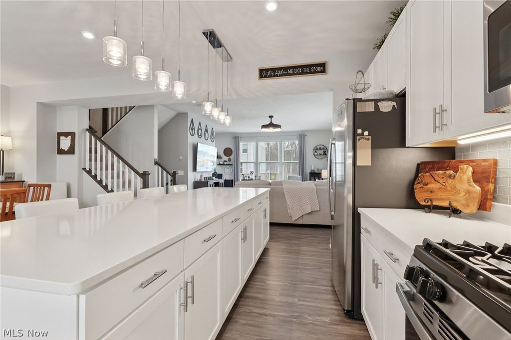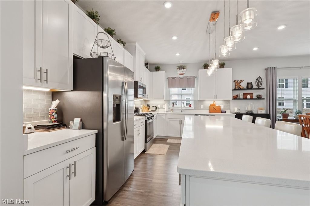 Welcome to refined modern living in this stunning three-story end-unit townhome, barely five years young and meticulously maintained. From the moment you step inside, you'll notice the exceptional attention to detail and exquisite designer touches that set this home apart. Thoughtfully curated finishes and a sophisticated aesthetic flow seamlessly throughout all three levels, creating an atmosphere that feels both elevated and warmly inviting. The heart of the home is a stunning gourmet kitchen, outfitted for those who love to cook and entertain featuring premium finishes, gleaming quartz countertops, and an oversized center island perfect for gathering and meal prep. High-end appliances and a sleek, modern design come together to create a space that is as functional as it is beautiful. The home offers three spacious bedrooms and 2½ beautifully appointed bathrooms, providing the perfect balance of comfort and functionality. The owner's suite is a true retreat, complete with a custom closet system professionally designed and installed by Closet by Design offering an organized, boutique-style experience that makes getting ready a pleasure every day. Generous storage throughout ensures every inch of space is maximized, while the finished garage adds a polished, move-in-ready convenience rarely found at this level. As a coveted end unit, enjoy the added privacy, extra natural light, and serene, unobstructed views of a picturesque pond a tranquil backdrop you'll look forward to coming home to every day. This is not just a home it's a lifestyle. Pristine, modern, and truly turnkey, this townhome is a rare opportunity that won't last long.