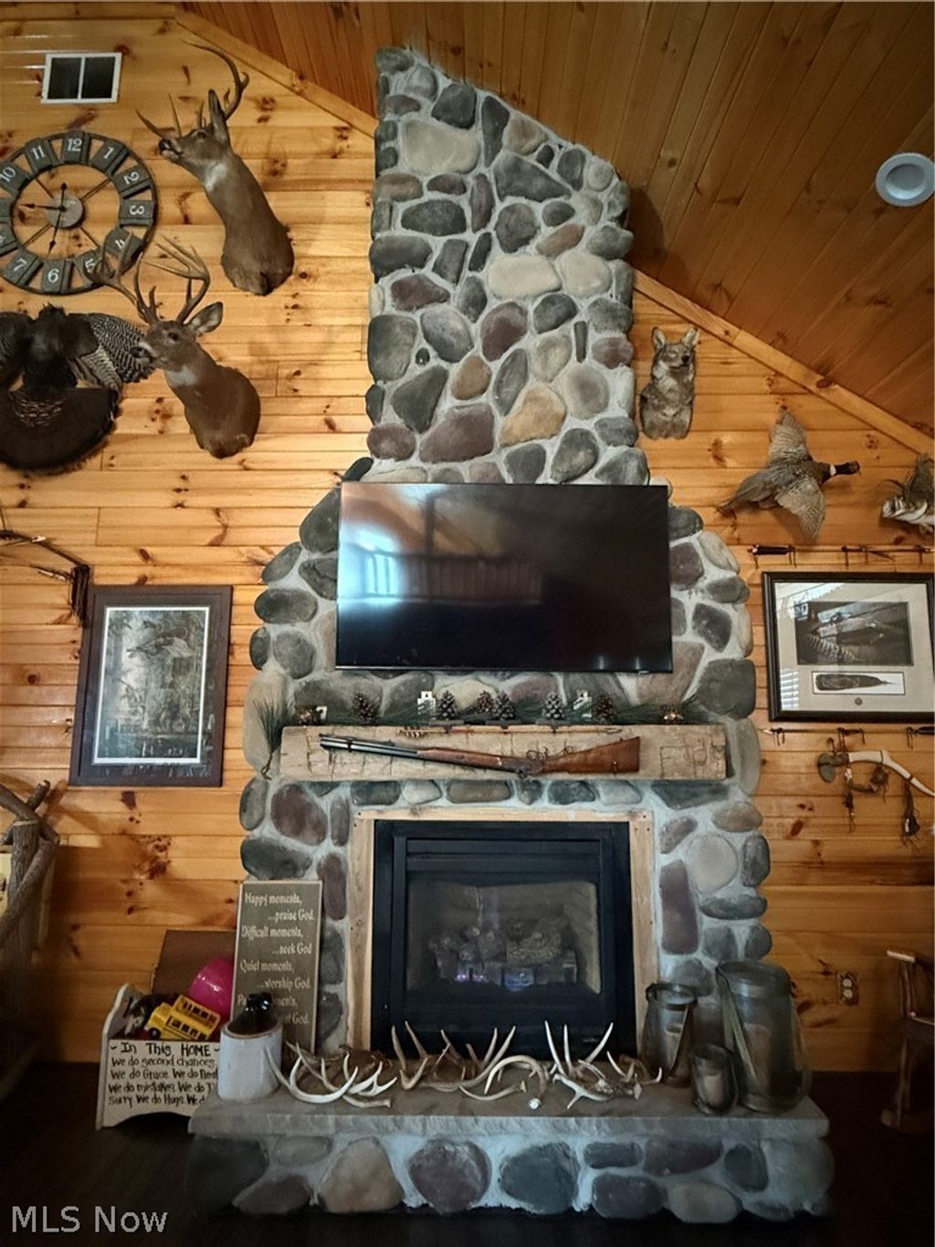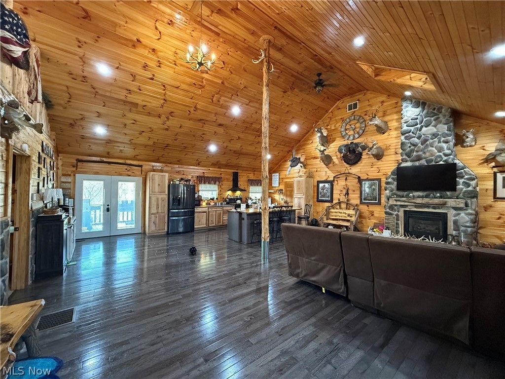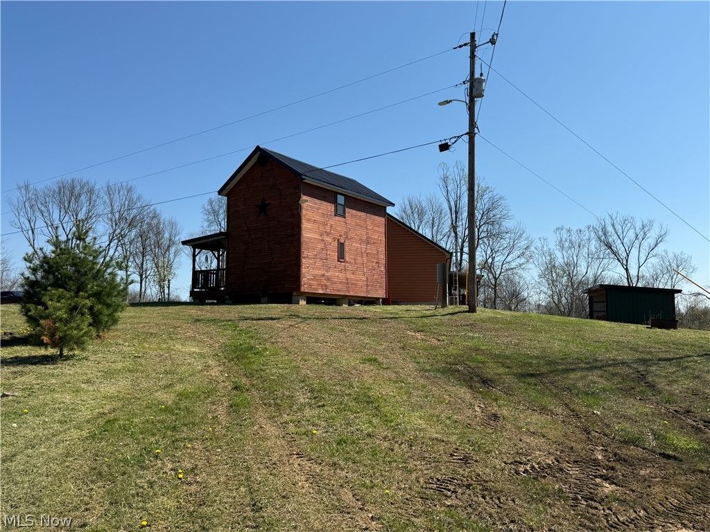 Wow! The minute you walk in this newly 2021 constructed home, you feel the stress release from your body and the cozy vibe set in. From the knotty pine sourced from Maine and Canada to the 3/4" hickory floors, the cabin feel is abundant. To top it all off the beautiful gas log and stone fireplace appeals to the eyes and keeps you warm in the cold winter months. The kitchen has plenty of hickory cabinets and the island has more storage underneath. The main suite has a nice sized walk in closet and bath with ceramic tile floors, a rock sink with a fountain style faucet and a tiled walk in shower. The loft bedroom has it's own deck that overlooks the woods and tops off the 18' cathedral ceilings. The utility room located between the main part of the home and garage is where you will find the laundry room and additional bath. The garage is 30'x30', fully insulated, and heated with a 30,000 BTU gas heater. Have a growing family? There is plenty of room above the garage to finish off for additional living space and the insulation has already been done for you. Up next is the utility shed to the right of the home which is currently being used as a craft area. The 20'x14' building was newly constructed in 2025 and is heated, cooled, has electric, a loft, and beautiful hickory floors and knotty pine throughout. Behind the home is a 15'x12' Amish constructed outbuilding to store your mowers and outdoor toys. Are you a hunter or do you like to fish? The 15 acres boasts a nice sized pond stocked and ready to go with bass and bluegill. There are well maintained trails with tree stands and a hunting blind that conveys with the property. Mature trees line the woods and there are also cleared off areas which are flat enough for additional building spots. Whether you are outside or inside, this property has all the comforts and vibes to relax or have some fun. Enjoy the decks, porches, pond, and trails for a totally relaxing experience and all this property has to offer.