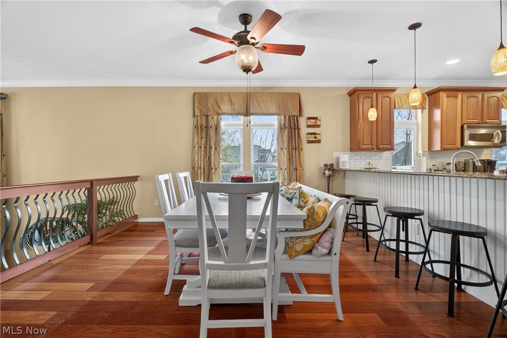 Experience elevated waterfront living in this stunning end-unit townhome located in the highly desirable Harborwalk community. Offering over 2,400 square feet of thoughtfully designed living space, this home showcases beautiful views of the Black River, breathtaking sunsets, and the iconic Charles Berry Bascule Bridge"”all just across the street from Lake Erie. Step inside to a bright and welcoming entry-level family room featuring ceramic tile flooring and abundant natural light. The main living level offers an open-concept layout designed for both everyday living and entertaining, highlighted by floor-to-ceiling tinted windows that fill the space with sunlight. Custom motorized shades add both convenience and style, while the gas fireplace creates a warm and inviting focal point. Step out onto the private wrap around deck off the living room"”perfect for enjoying morning coffee or evening sunsets and listening to the music across the river. The kitchen is beautifully appointed with granite countertops, custom cabinetry, a built-in buffet with wine storage, center island, stainless steel appliances, and ceramic tile flooring. Balconies at both the front and rear of the home make it easy to enjoy the outdoor setting from multiple vantage points. Upstairs, the spacious primary suite offers a true retreat with room for a king-sized bed, sitting area, walk-in closet, and luxurious four-piece bath. Two additional bedrooms, full glamour bath, and a convenient laundry room complete the upper level. Additional features include a 2 car attached garage & access to Harborwalk's exceptional amenities, including pool, fitness center & event space. Just moments away, enjoy the newly enhanced stage at Black River Landing"”perfect for concerts, events & summer nights along the water. Recent updates include new roof (2023), ceiling fans (2023), motorized shades (2018), and buffet cabinet (2017). Enjoy the best of waterfront community living"”schedule your private showing today.
