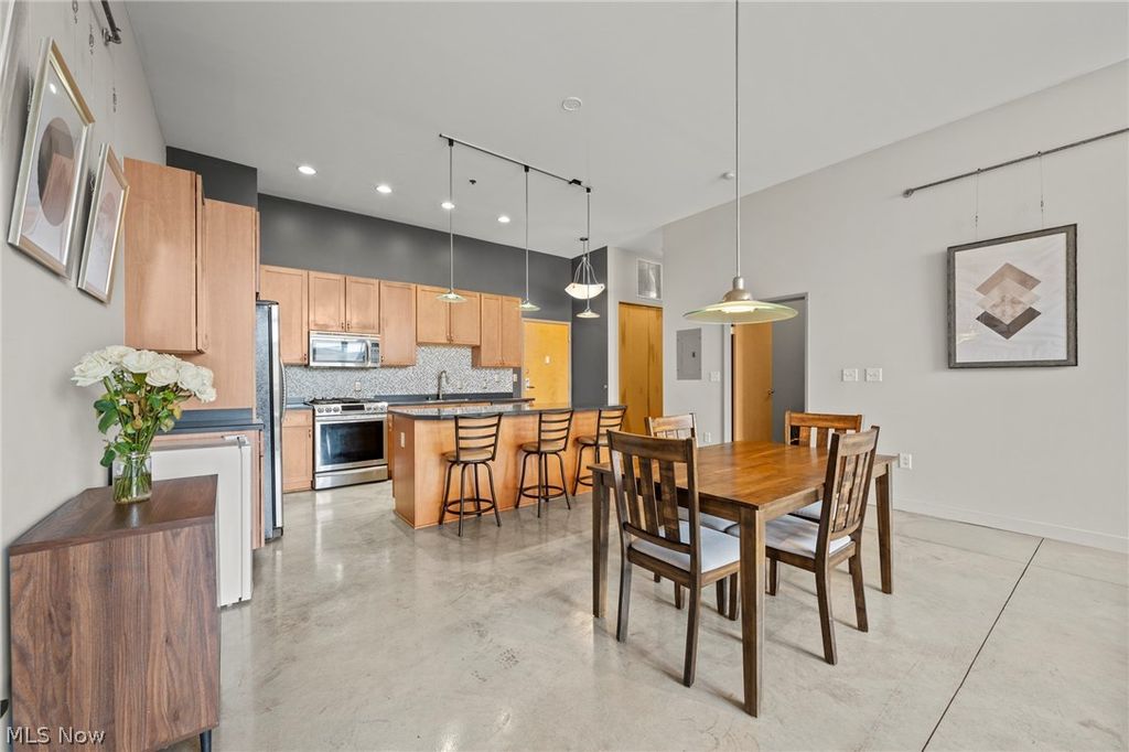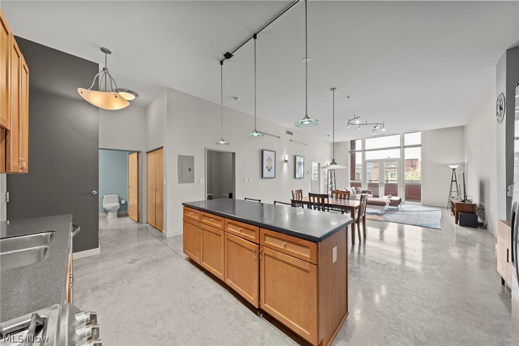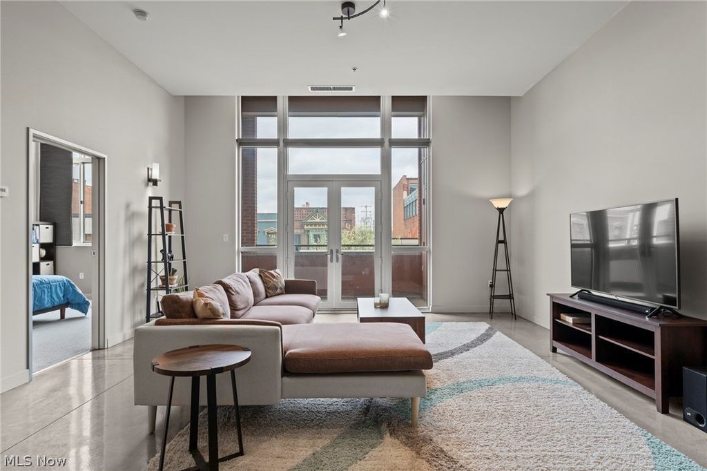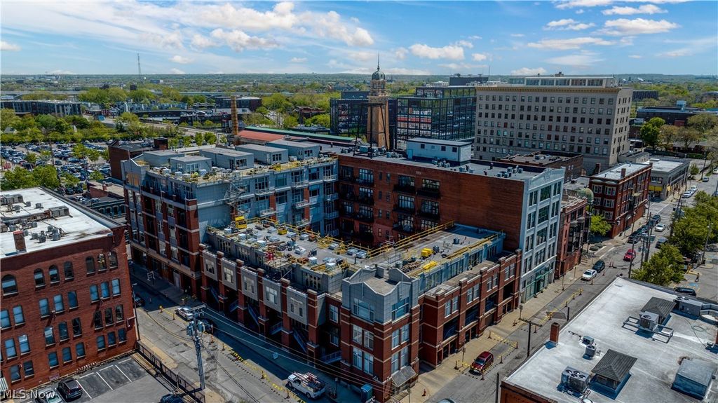 Welcome to one of the most desired addresses in the heart of Ohio City! Can you think of a more walkable condo location in Ohio City? This stunning 2 bedroom, 2 full bath Fries and Schuele condominium offers the perfect blend of modern design and urban energy. Step through the front door and be immediately drawn to soaring floor-to-ceiling windows that flood the open-concept living space with natural light and frame breathtaking views of the iconic W. 25th Street corridor. The chef's kitchen is an entertainer's dream, featuring premium stainless steel appliances including a brand new dishwasher, an oversized center island, and generous storage that makes cooking and hosting effortless. Polished concrete floors anchor the expansive dining and living areas, creating a sleek, loft-inspired aesthetic that is both stylish and low-maintenance. Step out onto your private balcony and soak in unparalleled views of the West Side Market, along with the acclaimed restaurants and breweries that have made Ohio City one of Cleveland's most sought-after neighborhoods. The spacious primary suite features dramatic ceiling-height windows, a luxurious en-suite bath with a glass-and-tile shower, and a generous walk-in closet. A well-appointed second bedroom and full bath offer comfort and privacy for guests, while a convenient in-unit laundry completes the thoughtful layout. Additional highlights include a recently replaced hot water tank, a newly replaced building roof, and one assigned attached garage space with a private storage unit - giving you peace of mind and true turnkey living. The garage is not a commonly found amenity in area condominiums!! All of this just minutes from downtown Cleveland and the lakefront!