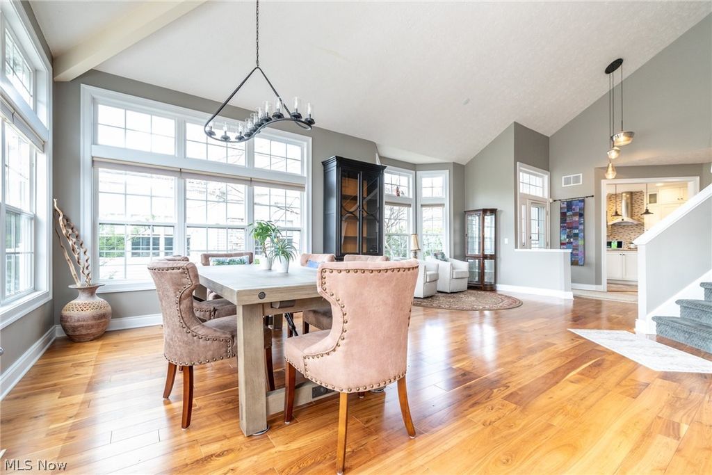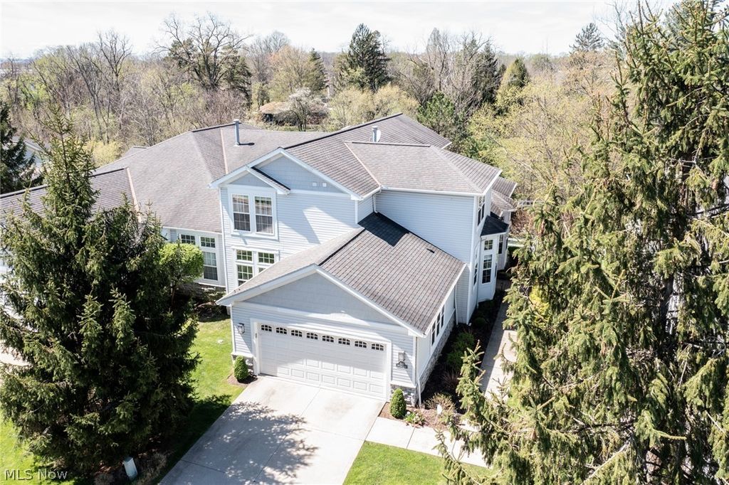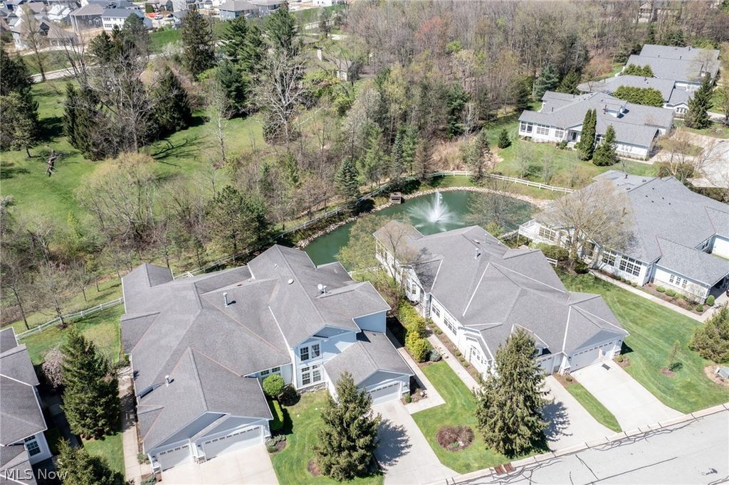 Absolutely stunning four Bedroom and four Full Bath Townhome/Cluster in Villas of Orange! Views of the pond/fountain create a serene and peaceful setting in this Custom home with Designer décor and many Seller upgrades! Combination Living and Dining Room with gorgeous Walnut hardwood flooring has wrap around windows with views of the deck and pond. Family Room has an incredible stacked stone fireplace with custom carved log mantle. Recently renovated eat-in Kitchen with white, Shaker style cabinetry, offers bayed breakfast area, farmhouse sink, pantry; cleverly embossed brick floor; center island, Cambria Quartz counters, with KitchenAid double wall ovens and 5 burner Thermador gas cooktop. First floor Bedroom, currently being used as an office, has a beautiful "weathered wood" accent wall and spacious walk-in closet with adjacent full bath with shower over tub! Door from Family Room leads to back Deck with Sunsetter retractable awning and Azek rubber pavers for outdoor enjoyment! Unique! Mud room with garage access and large Laundry room complete the first level. Primary suite on second has four ample closets including walk-in with organizing system, and a great view of the pond and woods. Updated Spa bath has oversized glass door stall shower and dual Quartz vanity. Two additional Bedrooms, each with a walk-in closet share updated full Bath in the hall. Newer carpet in Bedrooms and upstairs hall and stairway. Fabulous Finished Walk-out Lower Level has exercise and play space along with Full Bath. Sliders open to a large partially covered paver patio. Unfinished side of basement with tons of storage. Upgraded Electric Panel with EV Charger in Garage! New (2026) Hot Water Tank! New Roof scheduled for 2026! See Sellers Improvements for more details. Lower level total square feet is 1648. Convenient to Orange Village Park, highways, Miles Market, Pinecrest and more! Won't Last!!!