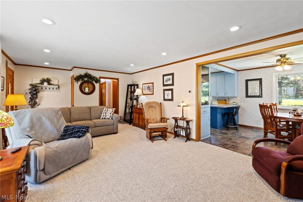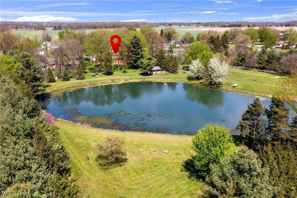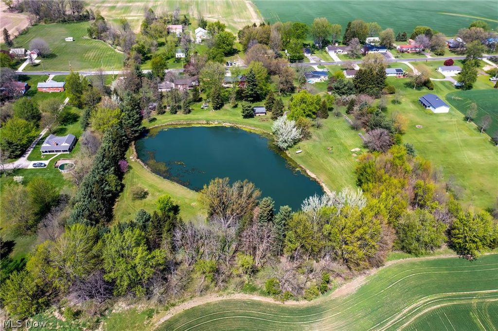 Tucked away in a peaceful, private setting on 6.984 acres with a large pond, this home gives you the ultimate feel of owning your own private retreat. This beautiful ranch home features 3 bedrooms and 2 full bathrooms. The living room features brand new carpet and a cozy gas fireplace. Main floor primary bedroom with attached bathroom. The fully applianced kitchen and dining area overlook the breathtaking backyard views. Walkout lower level with a rec room with a wood burning fireplace, full bathroom, kitchenette, and abundant storage. Spend your evenings on the back patio enjoying the serene setting or going for leisurely walks around the pond, which is also perfect for fishing or taking the row boat out. Updates include new metal roof in 2025, new water heater, and many newer Anderson windows. Outbuilding with propane heater. Excellent location within the Shelby City School district - enjoy the beautiful country setting while being just minutes to restaurants and shopping.