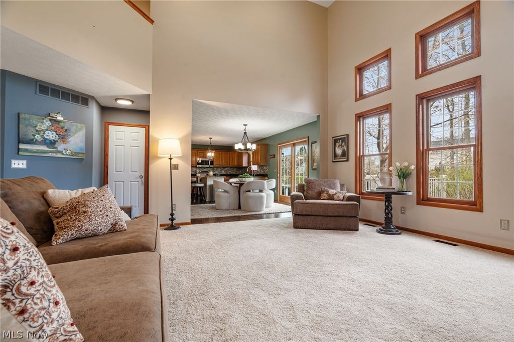 Welcome home to this beautifully designed 3-bedroom, 3.5-bath home offering the perfect blend of space, style, and thoughtful details throughout. The stunning kitchen is truly the heart of the home, featuring granite countertops, a large island with seating, stainless steel appliances, a double oven, purified water spout, and a spacious pantry. It opens seamlessly to the dinette and living room, where soaring ceilings and a dramatic wall of windows fill the space with natural light, creating an airy and inviting atmosphere. The main level also includes a gorgeous formal dining room, a convenient half bath, and a generously sized laundry room with additional storage. Upstairs, you'll find three bedrooms, a full bath, and a versatile sitting area with extra storage, perfect as a cozy reading nook! The primary suite is a true retreat, offering an expansive layout, a walk-in closet, and a beautifully appointed ensuite bath. Enjoy a spa-like experience with a walk-in tile shower featuring dual shower heads, a dedicated vanity area, a private water closet, and a linen closet for added convenience. The finished lower level adds even more living space with a large recreation room, a full bathroom, and two substantial unfinished spaces providing additional storage. The furnace, air conditioning, and hot water tank have all been upgraded since 2019, adding peace of mind. Get ready to entertain this summer on the spacious deck and spend evenings unwinding in the hot tub! A storage shed adds even more functionality to the outdoor space. With its open layout, upscale finishes, and versatile living areas, this home has it all! Don't miss out on this rare opportunity to move right in to this beautiful home!